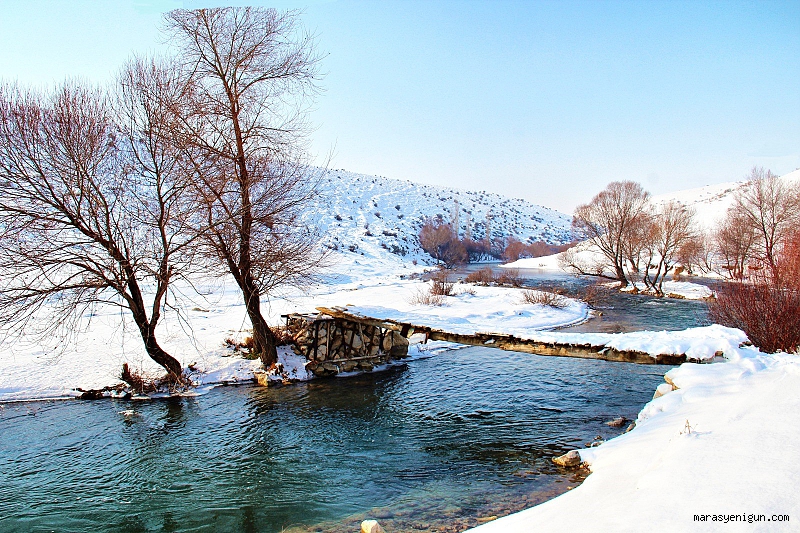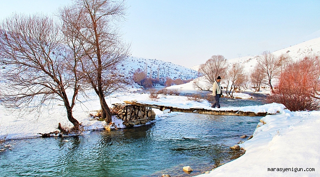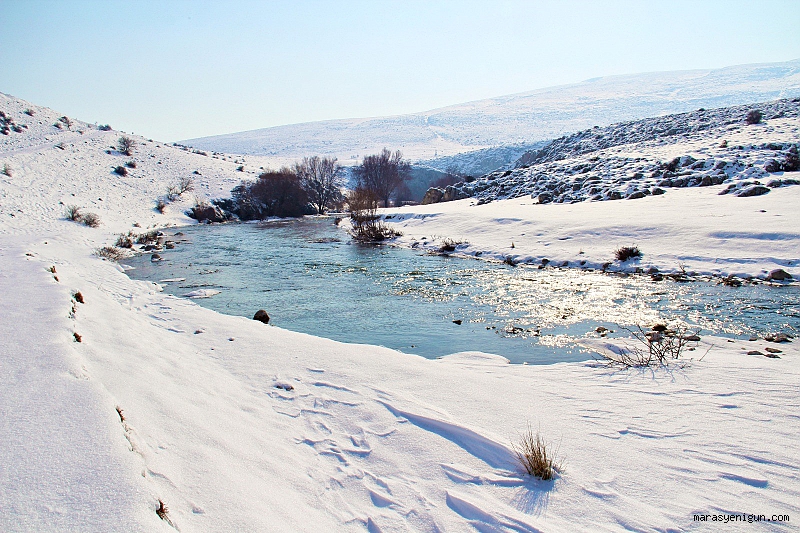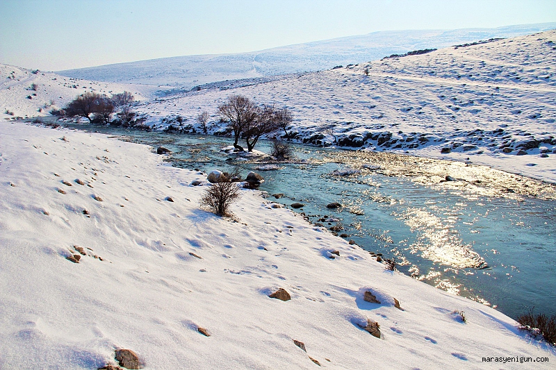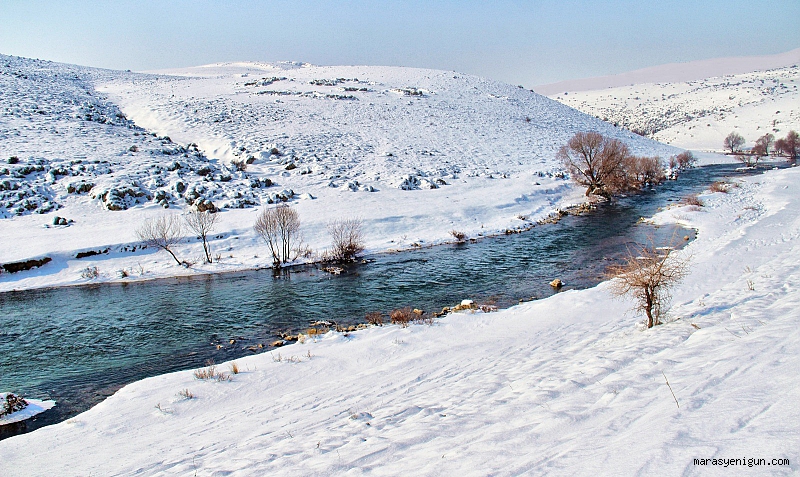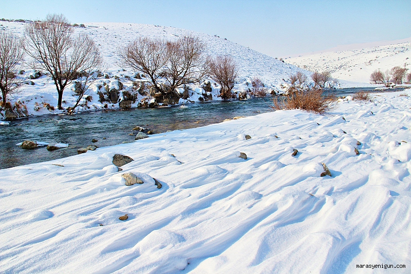 Kahramanmaraş'ta beyaza bürünen Hurman Çayı görsel şölen oluşturdu.