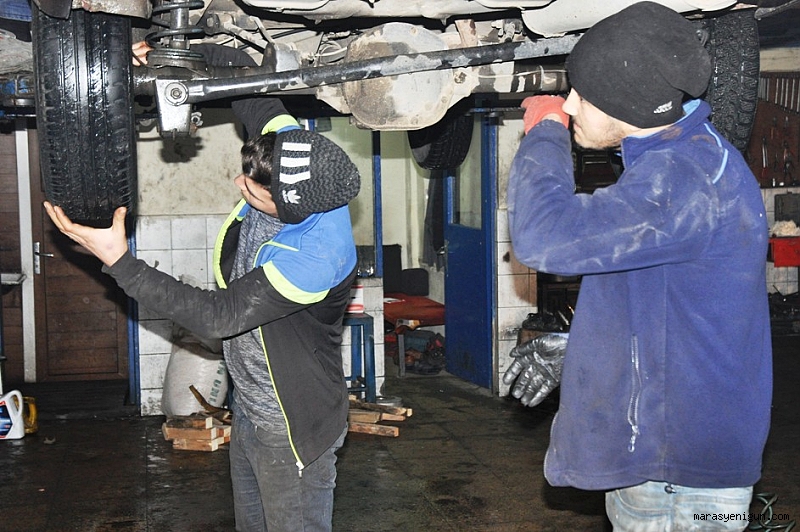 Kahramanmaraş’ta kış mevsimi nedeniyle araçlarına bakım yaptırmayan sürücüler sanayide yoğunluk oluşturdu.