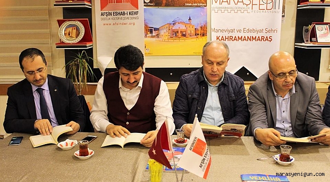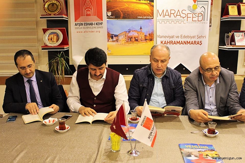 Dostluk Kardeşlik ve Kültürün buluştuğu adres olan AFŞİNDER cumartesi sohbetlerinde yine farklı bir konuk ve etkinliğe imza attı. Dernek üyelerini bilgilendirmek için tarih, kültür, sanat ve aktüel olarak güncel konulara temas eden programlar yaparak dikkat çeken Afşin Eshab-ı Kehf Dostluk Kültür ve Çevre Derneği, Kütüphaneler haftasımünasebeti ile dernek merkezinde kitap okuma saati düzenledi.Dernek kütüphanesinde bulunan Kahramanmaraşlı şair ve yazarların kitapları programa gelen, genç, yaşlı, bayan ve çocuklar tarafından okundu. Programın ilk bölümünde dernek üyeleri ile hususi okuma saati yapılarak sükunet içerisinde seçilen kitaplar okundu.İkinci bölümde ise içinde bulunduğumuz üç aylar münasebeti ile Abdullah Hırabaşoğlu hoca tarafından manevi bereket aylarından azami istifade nasıl edilir, önemli geceler nasıl değerlendirilir ve ümmetin Rahmet ve Mağfiret ayı olan Ramazana nasıl girilir konuları işlendi.Konu hakkında açıklama yapan Afşinder Başkanı Ahmet Ardıç, İnsan bilmediğine düşmandır demiş atalarımız. Bizlerde farkındalık oluşturmak adına bu toplantımızda tüm üyelerimize kütüphanemizde mevcut olan Kahramanmaraşlı yazarlarımıza ait eserleri dağıtarak belli bir süre okumalarını istedik. Katılan herkes mutlaka birkaç sayfa okudu. Etkinlikten amacımız kitaba dokunmak, kokusunu almak, yazarları tanımak ve kendi aile fertlerine güzel bir örnek olmalarını hedefledik. Kütüphaneler haftasına özel bu etkinlik ile ayrıca diğer sivil toplum kuruluşlarına örnek olmayı arzu ettik. Yazarlarımıza, tüm katılımcılara ve kıymetli Abdullah hocamıza teşekkür ediyorum dedi.Program sonunda katılımcılara yöresel yemekler ikram edildi.