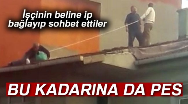 Bağcılar’da çatıya tamir için çıkan bir işçinin can güvenliği arkadaşları tarafından beline ip bağlanarak sağlandı. İpi tutanlar işçi aşağıya sarktığı sırada sohbet ederken, düşündüren “İş güvenliği” görenlere bu kadarına da pes dedirtti.