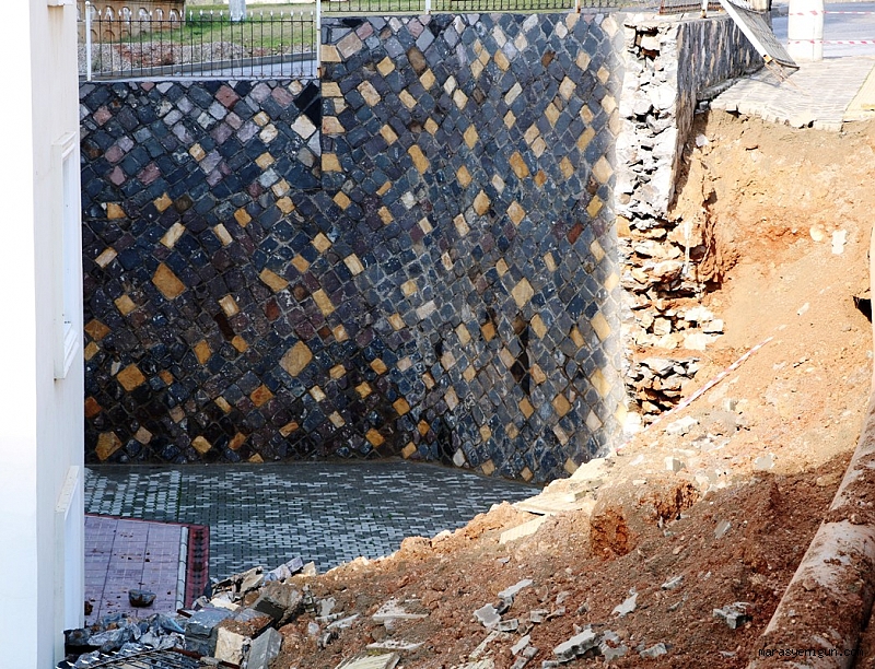 Görüntülerde, ismi öğrenilemeyen bir kadının kaldırımda yürüdüğü sırada duvarın çökmesi ve kadının son anda kaldırım taşından tutarak düşmekten kurtulduğu görülüyor. Olay sonrası çevrede bulunan vatandaşlar kadını asılı bulunduğu kaldırım taşından yukarı çıkardı.