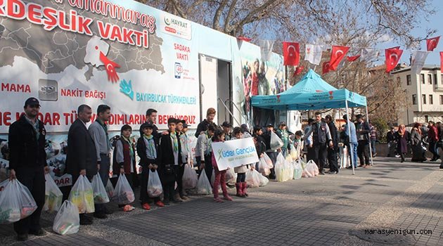 Kahramanmaraş Lider Gençlik Spor ve İzcilik Kulübü İzcileri “İzci Yararlıdır Haftası” dolayısıyla, Bayır Bucak Türkmenlerine gıda yardımı yaptı.