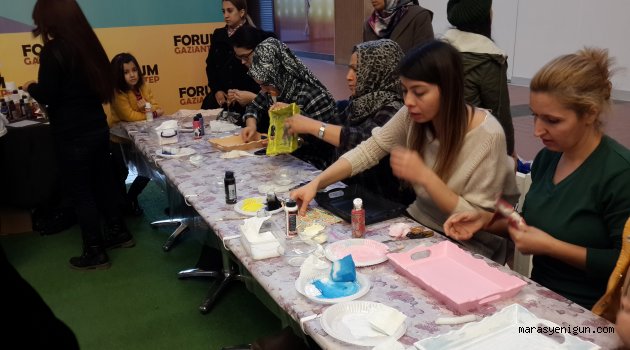\r\n\r\nGaziantep'in gözde alışveriş ve eğlence merkezi Forum Gaziantep, Kadınlar Kulübü etkinlikleri kapsamında 2 Ocak Cumartesi günü Mumla Eskitme Teknikleri Atölyesine ev sahipliği yaptı.\r\n\r\nGaziantepli kadınların yoğun ilgi gösterdiği etkinlikte ahşap, mum ve boya ile hayal dünyalarını ahşap tepsilere yansıttılar. Farklı desende peçetelerle eskitme tekniğini kullanarak kendi objelerini tasarlayan kadınlar, el emeklerini evleri için hazırlıyor olmanın keyfini yaşadı.\r\n\r\nForum Gaziantep, Kadınlar Kulübü etkinlikleri kapsamında birbirinden yaratıcı ve eğitici farklı atölye çalışmalarına ücretsiz olarak ev sahipliği yapmaya, her hafta sonu Cumartesi günleri farklı etkinliklerle hayata geçirmeye devam edecek. \r\n