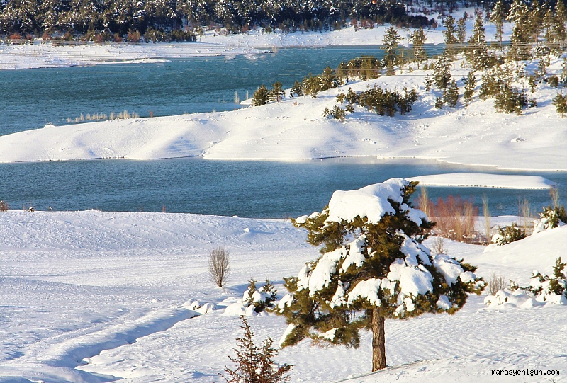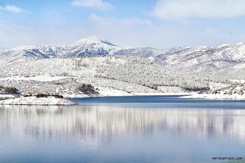 Kahramanmaraş Adatepe Barajı yağan karın ardından eşsiz manzarasıyla görsel şölen oluşturdu.