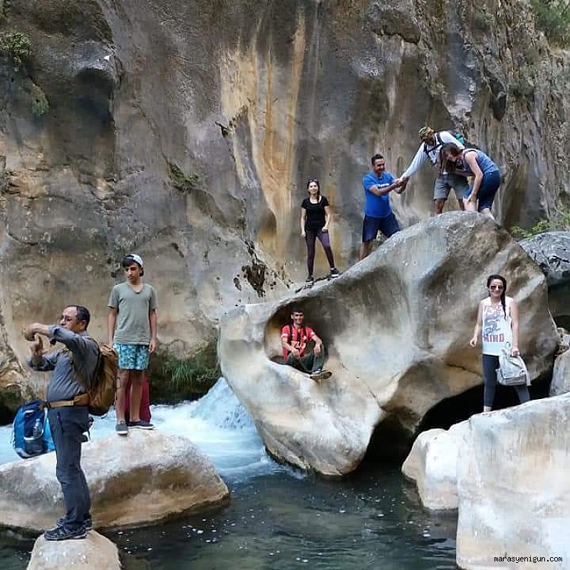 Kahramanmaraş’ın doğal güzellikleri insanları kendine çekmeye devam ediyor. Göksun İlçesi ile Adana’nın Saimbeyli ilçesi sınırları arasında kalan muhteşem görüntüsü ile insanları büyüleyen Hançer Kanyonu bölgenin turizm merkezi olmaya aday... Geçtiğimiz günlerde Gaziantep’ten gelen bir grupla Hançer Kanyonu’nda bir geziye katılan bölgenin Eğitimci Dağcı Rehberi Halil İbrahim Algan kanyonla ilgili bilgiler verdi.Algan; “Hançer Kanyonu, her geçen gün ziyaretçi sayısını yükselterek devam ediyor. Göksun İlçesine 30 km. uzaklıkta olup Aybastı Kalesi, Kaleboynu Kalesi ve Manastıri ile sizi tarihin derinliklerine götürüyor.Yolun 15 km asfaltı olup kalan kısmı ise stabilizedir. Çakılı Koyak ve Kale panoraması ile doğanın eşsiz güzellikleri yani başınızda oluyor. Balık türlerinin yanı sıra dağ keçisi gibi hayvanların korunması bölge açısından bir hayli sevindirici. Rafting sporu, kaya tırmanışı için ideal yer... Hapis Kanyonu’nun birleştiği nokta kamp ve izcilik faaliyetleri açısından çok güzel bir yer. Kanyon ortalama 20 km uzunlukta olup, iç noktalarında kimi yerlerde 10 ile 15 metre arasında dar geçişler vardır. Yüksekliği ortalama 350 ile 500 metre arasındadır. Aynı zamanda içerisinde su kaynaklarını da barındırıyor.Doğa ve tarih kokan güzellikleri görmeye herkesi bekliyoruz. Rehber olarak her zaman yardımcı oluyoruz.” dedi.