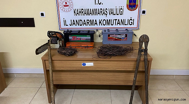 Kahramanmaraş’ta çeşitli tarihlerde iş makinelerinin ve büyük araçların akülerini çalan 2 kişi, jandarma dedektiflerinde yakalandı.Edinilen bilgiye göre, Pazarcık İlçesi Cumhuriyet Mahallesinde ikamet eden Y.E.C’ye (38) ait 27 DB 124 plakalı tırdan 2 adet akünün çalınmasına teşebbüs edildiği ve yine İsmetpaşa Mahallesinde ikamet eden A.D’ye (48) ait 27 RU 253 plakalı traktöründen ve 35 BRZ 88 plakalı kamyonetinden 2 adet akünün çalınması ihbarlarının alınması üzerine jandarma ekipleri harekete geçti. JASAT dedektifleri ile jandarma ekipleri, güvenlik kamera araştırmaları ve tanık beyanlarından yola çıkarak hırsızlıkları gerçekleştiren kişilerin M.B. (20) ile E.G. (27) olduğunu tespit etti. İlçeye bağlı Narlı Mahallesi’nde yakalanan 2 kişinin ikametinde yapılan aramada, suçta kullanılan 1 adet balyoz, 1 adet demir makası, 1 adet pense, 1 adet tornavida ve hırsızlık malı olduğu değerlendirilen 1 adet motorlu testere ve yaklaşık 20 kilogram soyulmuş bakır kablo ele geçirildi.Ayrıca, arama esnasında görülen yaklaşık 60 metre bakırları çıkarılmış kablolar el koyan ekipler, 2 şüpheliyi adliyeye sevk etti.