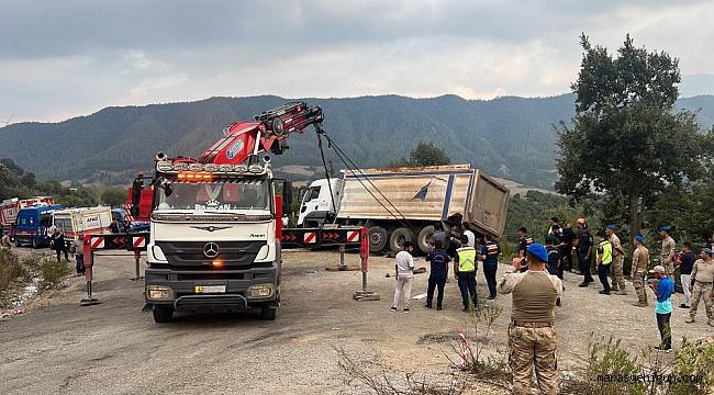 Kahramanmaraş’ta cenaze defneden kalabalığın arasına dalarak6 kişinin ölümüne, 25 kişinin de yaralanmasına neden olan kamyon vinç yardımıyla olay yerinden kaldırıldı.Olay, Andırın ilçesinde Darıovası mevkiinde meydana geldi. Kum yüklü kamyon, mezarlıkta defin için bekleyen kalabalığın arasına daldı. Olay yerinde can pazarı yaşanırken ilk belirlemelere göre 6 ölü, 2’si ağır 25 yaralandı.Kalabalığın bulunduğu alana devrilen kamyonun altında kalan vatandaşlar kurtarılırken, kazaya sebebiyet veren kamyon sürücüsü gözaltına alındı. Olay yerindeki bazı araçlarda da kaza nedeniyle maddi hasar oluşurken, ekipler kamyonu olay yerinden kaldırdı. Kamyon vinç yardımıyla kaldırılırken, cansız beden olma ihtimaline karşı ekipler elleriyle alanda arama yaptı.Olay ile ilgili cumhuriyet savcısı görevlendirilirken, feci kaza ile ilgili soruşturma titizlikle sürdürülüyor.