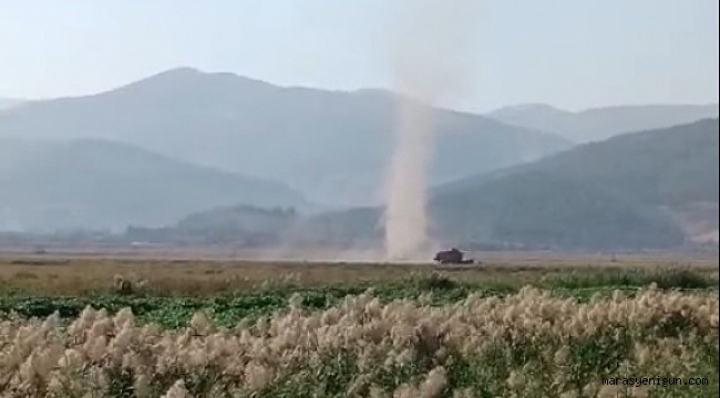 Kahramanmaraş'ta çiftçilerin mısır ve ak darı hasadı yaptığı sırada Gavur Gölü bölgesinde kısa süreli hortumlar çıktı.