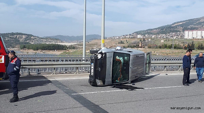 Kahramanmaraş’ta hafif ticari aracın devrilmesi sonucu yaşanan kazada 2 kişi yaralandı.Edinilen bilgiye göre, Onikişubat İlçesine bağlı Kılavuzlu Mahallesi üzerinde 46 BJ 949 plakalı hafif ticari araç sürücüsü direksiyon hakimiyetini kaybetmesi sonucu çelik bariyerlere çarptı. Çarpmanın etkisiyle devrilen hafif ticari araçta sürücü ile birlikte yanında bulunan 1 kişi yaralandı. Yaralılar, çevredekilerin ihbarı üzerine kaza yerine gelen sağlık ekiplerince KSÜ Tıp Fakültesi’nde tedavi altına alındı. Hastanede tedavi altına alınan yaralıların sağlık durumlarının iyi olduğu öğrenildi.