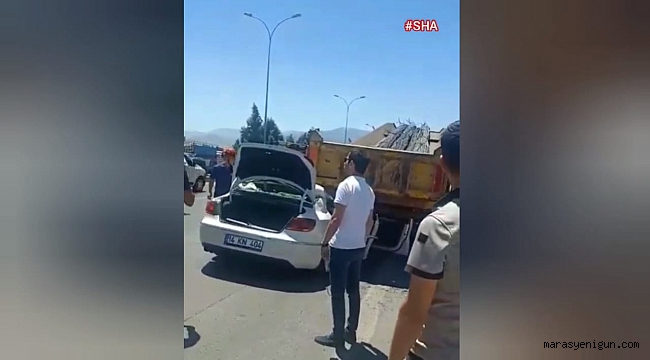 Kahramanmaraş’ta demir yüklü kamyona arkadan çarpan otomobil içerisinde bulunan 3 kişi yaralandı