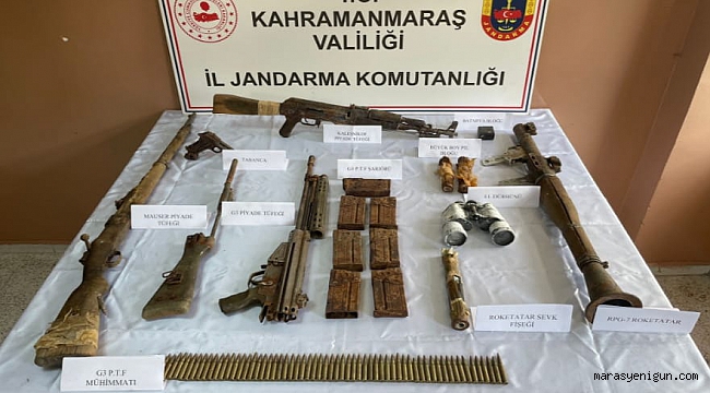 Kahramanmaraş’ta jandarma ekipleri, bölücü terör örgütü PKK’ya ait depoda çok sayıda silah ve mühimmat ele geçirdi.