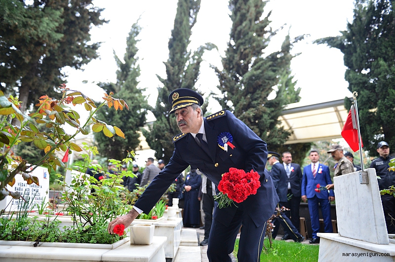 Etkinlikler kapsamında Kahramanmaraş’ta, Türk Polis Teşkilatının kuruluşunun 177. yıl dönümü ve 10 Nisan Polis Haftası dolayısıyla şehit polisler için anma töreni gerçekleştirildi.Şeyhadil Mezarlığı'nda bulunan Kahramanmaraş Şehitliği'nde düzenlenen program saygı duruşu ve İstiklal Marşı’nın okunmasıyla başladı. Daha sonra şehitler için Kur'an-ı Kerim okundu ve dua edildi.Şehit mezarlarına tek tek karanfil bırakan İl Emniyet Müdürü Salim Cebeloğlu, şehit yakınlarıyla sohbet edip, onlarla yakından ilgilendi.Törene, şehit aileleri, gaziler ve emniyet mensupları katıldı.