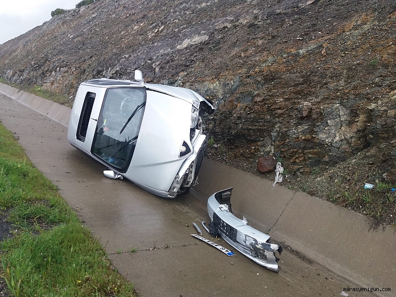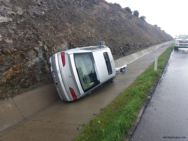 Edinilen bilgilere göre, Kahramanmaraş-Gaziantep karayolu üzerinde şiddetli yağmur nedeniyle kontrolden çıkan İbrahim Sıdar yönetimindeki 46 ZA 872 plakalı kamyonet ile Mesut Gürbüz'ün kullandığı 46 ABA 038 plakalı otomobil direksiyon hakimiyetini kaybederek kaza yaptı. Kazada kamyonet sürücüsü İbrahim Sıdar hafif yaralanırken, araçlarda maddi hasar oluştu.