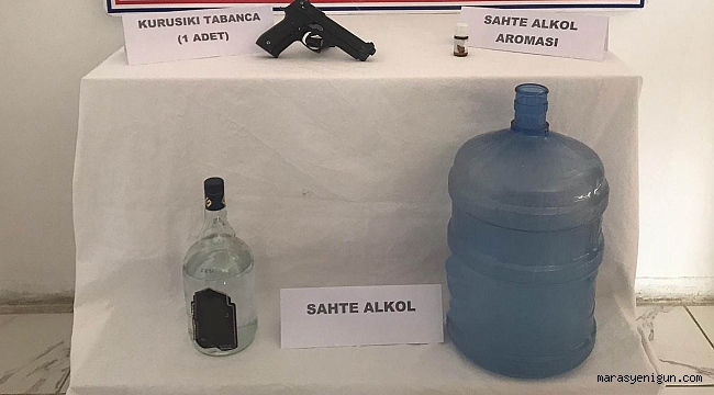 Edinilen bilgiye göre, İlçeye bağlı Emirilyas Mahallesinde H.İ.Y.(40) evinde sahte alkol bulundurduğu ve sattığı bilgisi üzerine Elbistan KOM Timi ile birlikte ikamette arama yapıldı. Yapılan aramada 19 litre sahte alkol, 1 adet anason aroması, 1 adet etil alkol şişesi ve 1 adet kuru sıkı tabanca ele geçirdi. Sahte alkol ve diğer malzemelere el koyan ekipler, H.İ.Y hakkında yasal işlem başlattı.