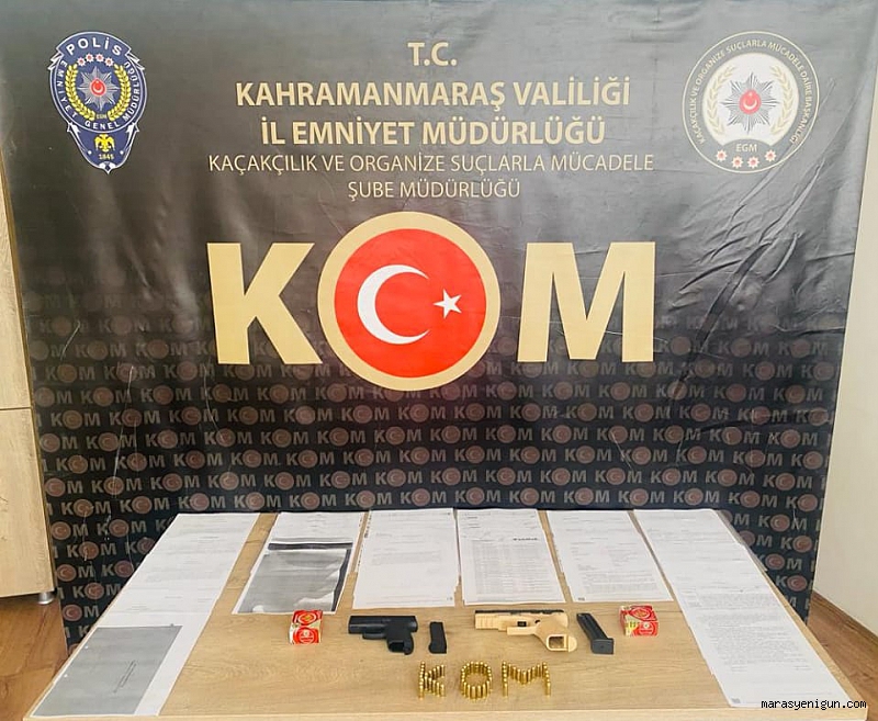 Kahramanmaraş’ta sahte evrakla bankayı dolandırmak isteyen 2 kişi, polis ekiplerince eş zamanlı operasyonla gözaltına alındı.Edinilen bilgiye göre, İl Emniyet Müdürlüğü KOM Şube Müdürlüğü görevlilerince, Cumhuriyet Başsavcılığı koordinesinde “Resmi Belgede Sahtecilik ve Dolandırıcılık” suçlarına yönelik yapılan çalışma kapsamında İstasyon Mahallesi Doğu Çevre Yolu üzerinde faaliyet gösteren banka şubesine sahte olduğu değerlendirilen resmi evraklar ile kamulaştırma parası adı altında 87 milyon Türk Lirası miktarlı bankayı dolandırmaya çalışan şüpheli şahıslara yönelik 2 ayrı adrese eş zamanlı operasyon neticesinde 2 kişi gözaltına alındı.Şüphelilerin ikamet ve araçlarında icra edilen aramada sahte olduğu değerlendirilen çok sayıda resmi evrak, 2 adet 7.65 çapında tabanca ile çok sayıda tabanca mermisi ele geçirilirken, olay şüphelilerinden M.T, adliyeye sevk edildi.