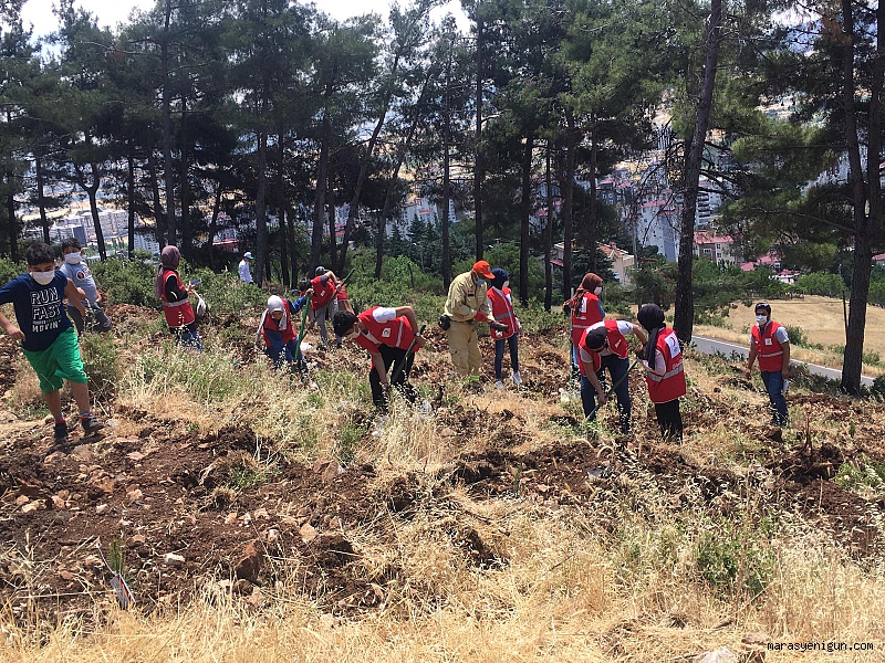 Kahramanmaraş’ta Türk Kızılay ve Aile, Çalışma ve Sosyal Hizmetler İl Müdürlüğünce yapılan proje kapsamında 452 şehidin anısına fidan dikildi.