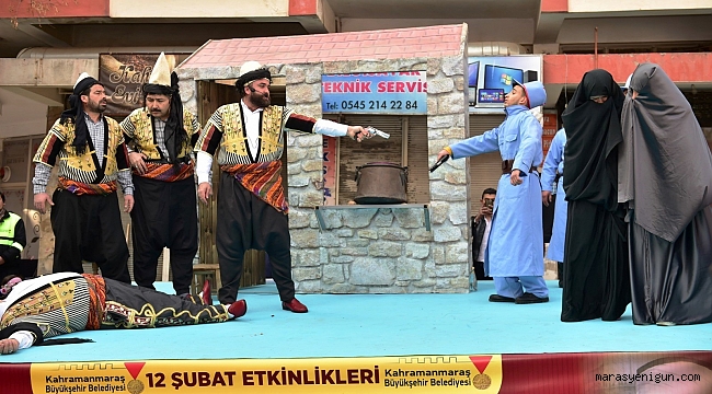 Konuşmaların ardından Sütçü İmam Olayı canlandırıldı. Kahramanmaraş Büyükşehir Belediyesi Konservatuarı oyuncuları tarafından sahnelenen Sütçü İmam olayı izleyenler tarafından coşkuyla karşılanırken, mahalleleri temsilen mahalli kıyafetler giyen çete grupları da ilgi odağı oldu.