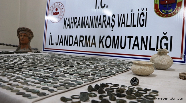 Edinilen bilgiye göre, İl Jandarma Komutanlığı KOM Şube Müdürlüğü ekiplerince, Onikişubat İlçesi Suçatı Mahallesinde M.Y.’nin izinsiz kazı yaparak bulduğu tarihi eserleri satmak için müşteri aradığı bilgisine ulaşıldı. Jandarma ekiplerince yapılan araştırmada M.Y.’nin bulduğu tarihi eserleri kendi ikameti dışında oğlu H.Y.nin Dulkadiroğlu ilçesi Karaziyaret Mahallesi'ndeki evinde gizlediği öğrenildi. Baba ve oğlunun evine eş zamanlı operasyon yapan jandarma, evlerde bin 409 adet metal sikke, 55 adet yüzük, 1 adet kadın başı figürü, 1 adet vazo, 1 adet metal şahin figürü, 1 adet küçük hayvan heykelciği, 1 adet at figürlü nal, 2 adet tunçtan yapılma insan figürü, 1 adet hayvana ait diş fosili, 2 adet delikli taş, 3 adet toprak kase, 1 adet çift taraflı hayvan figürü, 109 adet muhtelif tarihi obje ile kazıda kullanılan malzemeler ele geçirildi.