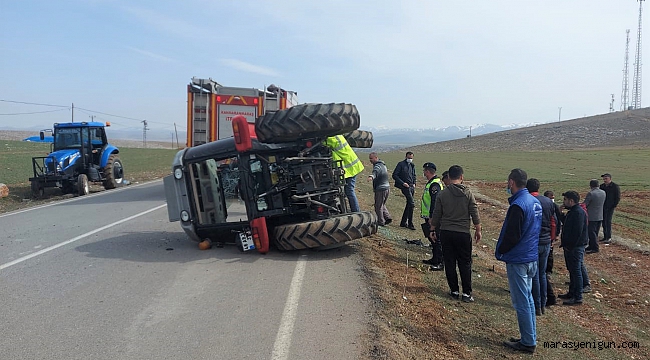 Kahramanmaraş’ın Elbistan İlçesinde sürücüsünün hakimiyetini kaybettiği traktör devrildi.