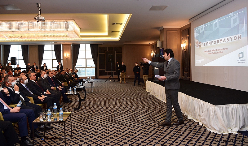 Ramada Plaza By Wyndham’da gerçekleşen program BİK Kahramanmaraş Şube Müdürü Veysel Kara’nın açış konuşmasıyla başladı.Ardından BİK Genel Müdürü Rıdvan Duran, şunları kaydetti: “ Kurum 1961 yılında kuruldu ancak son birkaç yıl öncesine kadar isminin çok fazla duyulmadı. Yurt genelindeki 982 gazetenin ilan ve reklamlarını kurumları aracılığıyla tebliğ edildi. Bunun yanında ise gazetelere ve gazetecilere 2 yıl faizsiz kredi desteği sağlanıyor. Gazetelere sadece finansman desteği sağlamakla kalmadıklarını aynı zamanda onları denetliyoruz da. İki türlü denetleme yapımız var birincisi teknik olarak, personel içerik, tiraj bakımından diğeri de basın ahlak açısından denetliyoruz. En önemli kısmı da burası. Medya operasyonlarının çığ gibi büyüdüğü algı operasyonlarının medya üzerinden pompalandığı ve artık bunun uluslararası olduğu bir dönemi yaşıyoruz. Yabancı ülkelerin birbirlerinde internet siteleri veya medya oluşumlarıyla birlikte orada bir algı çalışması yaptığını hepimiz biliyoruz. Biz işin o kısmına karışamıyoruz kendi ilan verdiğimiz gazetelere internet sitelerine karışıyoruz fakat en enazından yurt içindeki fonlanarak veya farklı şehirlerde desteklenerek algı operasyonlarına maruz bırakılabilecek duruları izale etmeye çalışıyoruz. Bunda iki türlü yapıyoruz. Birincisi şikayet üzerine yapıyoruz, ikincisi resen yapıyoruz. Şikayet üzerine kişilerin kurumların haklarını savunma konusunda yönetil kurulumuz müeyyideler uygulayabiliyor. İlan kesme cezası şeklinde. Bir diğeri resen uygulamalar biz onu genel müdürlük olarak takip ediyoruz gazeteleri ve devletin şahsına hakaret içeren toplumun milletin ahlakını bozabilecek haber veya yazıların, köşe yazılarının içeriğini inceliyoruz ve yönetim kurulumuzda bunu değerlendiriyoruz ve müeyyideler uyguluyoruz. Bu müeyyidelerle biraz gündeme geldik. Daha önce kurum çok fazla anılmazken resen uygulama sonrasında biraz daha fazla anılır hale geldi artık RÜTÜK ile birlikte anlıyoruz.”Duran, açıklamasının devamında ise, “Biz hiçbir siyasinin baskısıyla hiçbir siyasinin talebiyle hiçbir karar vermedik bugüne kadar. Biz yönetim kurulumuzun kestiği bütün cezalarla oturup muhataplarımızla konuşabiliriz sonuna kadar. Hukuk karşılığında da başarı seviyemiz yüzde 90’ın üzerinde müeyyide uygulanan gazeteler asliye mahkemelerine gidiyorlar müeyyidenin geri çekilmesiyle ilgili talepte bulunuyorlar şuandaki hukuktaki başarı karşılığımız yüzde 90’ın üzerinde. Şunu ilke edindik dedik ki devlete küfredip devletten para almak yok. Bu milletin inancına değerlerine hakaret edip devletten para almak yok. Biz bunun mücadelesini vereceğiz. İlk geldiğimiz gün uyguladığımız müeyyidelerden çok daha aza düştü. Çünkü gazetelerimiz dillerini düzelttiler. Artık karşılarında ciddi bir muhatap oludğunu ve yazdıklarının bir karşılığı olduğunu gördüler. Ceza oranımız bir hayli düştü. Çünkü gazetelerde bu sürece adapte oldular. Dünyanın dijitalleşmeye gittiği dönemde artık insanların cep telefonlarıyla çok büyük ciddi gazetelerden daha fazla etkileşim sağladığı bir döneme geldik. İnternet medyası artık anlık haberlerle beraber bulunduğu ortamdan yaptığı haberle beraber bizim gazetelerimizin önüne geçmiş durumda. İnsanlar anlık habere ulaşmaya tabi ki daha öncelemiş durumdalar. Fakat biz gazetelerimize eğitim çalışmaları veriyoruz ve bugüne kadar binden fazla gazetcimize sertifikalar verildi. Biz istiyoruz ki internet medyasıda gazetecilerimizden müteşekkil olsun. Çünkü gazetelerimizin yüzde 90’ının özellikle yerelde kendilerine ait haber doğrulama kültürleri var. Bu kültürleri internet medyasına da soksunlar istiyoruz. Tıklanma üzerinden hız üzerinden değil de doğrulama üzerinden doğru haber üzerinden ve dezenformasyona herhangi bir yanlış habere muhatap olmadan aracı olmadan internet medyasına onlar taşınsın istiyoruz. Bu konuda da bir takım eğitim çalışmalarımız devam ediyor. İtibar suikastlarının çok fazla yaşandığı bir dönemde yaşıyoruz. Muhatabınız biziz. internet medyası ile ilgili süreç tamamlandığında da onlarla ilgili kurumumuz bir birim kuracak sonrasında da yine muhatabınız biziz. Her dönemin kendine özgü bir haber üretimi oluyor. Tabi günümüzde de bu süreçler çok daha hızlandı. Sosyal medya ile bu süreçlerin ne kadar da hızlı bir şekilde gerçekleştiğine hepimiz şahit oluyoruz. Bu hız içerisinde de yapılan araştırmalar yalan haberin doğru habere göre 8 kat daha hızlı yayıldığını ortaya koyuyor. Biz ahilik geleneğinden geliyoruz. Her mesleğin kendine özgü etik ve ahlak kuralları var. Ben bu etik ve ahlak kurallarına riayet ederek bu mesleğe emek veren tüm basın mensuplarına teşekkür ediyorum. Gerçekleştirilen eğitimin hayırlı olmasını diliyorum” değerlendirmesinde bulundu.“Her mesleğin kendine özgü etik ve allak kuralları var”Daha sonra kürsüye gelen Kahramanmaraş Büyükşehir Belediye Başkanı Hayrettin Güngör, “Her dönemin kendine özgü bir haber üretimi oluyor. Tabi günümüzde de bu süreçler çok daha hızlandı. Sosyal medya ile bu süreçlerin ne kadar da hızlı bir şekilde gerçekleştiğine hepimiz şahit oluyoruz. Bu hız içerisinde de yapılan araştırmalar yalan haberin doğru habere göre 8 kat daha hızlı yayıldığını ortaya koyuyor. Biz ahilik geleneğinden geliyoruz. Her mesleğin kendine özgü etik ve ahlak kuralları var. Ben bu etik ve ahlak kurallarına riayet ederek bu mesleğe emek veren tüm basın mensuplarına teşekkür ediyorum. Gerçekleştirilen eğitimin hayırlı olmasını diliyorum” dedi.Vali Coşkun, “Günümüzde medya hayatı önem taşıyor”Son olarak söz alan Kahramanm