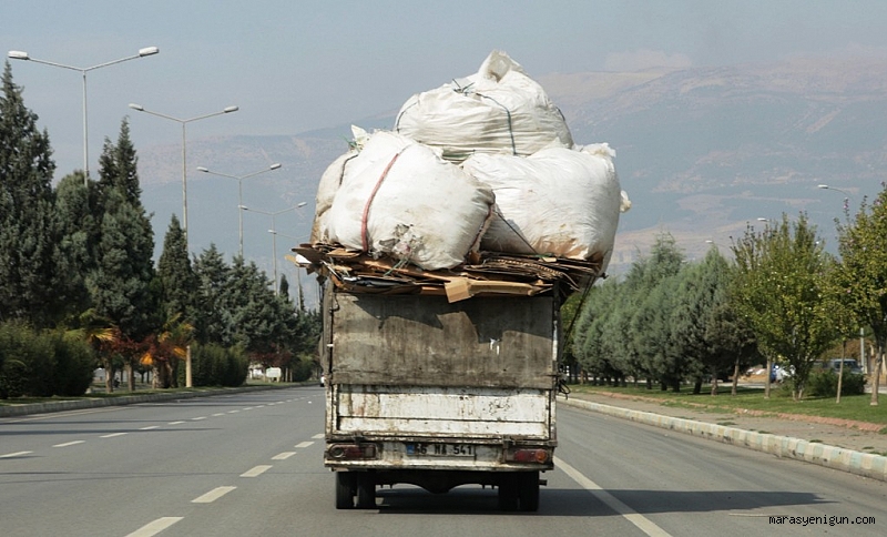 Kahramanmaraş-Gaziantep karayolunda kaydedilen görüntülerde, sürücüsünün ismi öğrenilemeyen 46 MA 541 plakalı kamyonet kasasındaki fazla yük nedeniyle trafikte tehlikeli anlara neden oldu. Kamyonetin kasasındaki karton ve torbaların aşırı yükle seyretmesi olası kazaya sebebiyet verirken, bir süre yoluna devam eden kamyonet daha sonra gözden kayboldu.