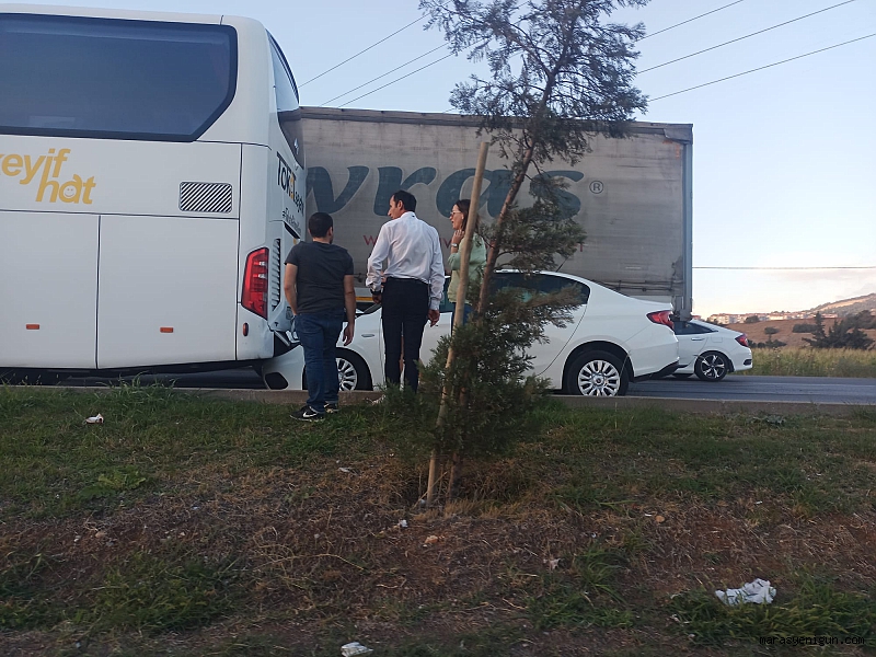 Kahramanmaraş’ta biri otobüs, biri kamyon ve iki otomobilin karıştığı zincirleme trafik kazası ucuz atlatıldı.