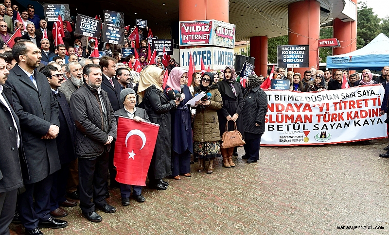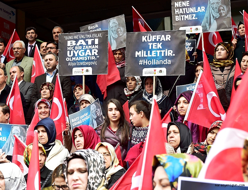 Kahramanmaraş Platformuna Üye Sivil Toplum Kuruluşu Temsilcileri Düzenledikleri Basın Açıklaması İle Hollanda’nın tutumunu kınadılar.İl Özel İdaresi Merkezi önünde Kahramanmaraş Platformundan 70 sivil toplum kuruluşu temsilcisi, Kahramanmaraş Büyükşehir Belediye Başkanı Fatih Mehmet Erkoç ve eşi Derya Erkoç, AK Parti Kahramanmaraş İl Başkanı Ahmet Özdemir ile vatandaşların destek verdiği basın açıklamasını Büyükşehir Belediyesi Kültür ve Sosyal İşler Dairesi Başkanlığı Kadın ve Aile Şube Müdürü Ayşe Taşkıran yaptı.Kahramanmaraş Platformu adına konuşan Şube Müdürü Taşkıran yaptığı açıklamada: “Bugün burada, Hollanda Devletinin Dışişleri Bakanımız Sayın Mevlüt Çavuşoğlu ile Aile ve Sosyal Politikalar Bakanımız Sayın Fatma Betül Sayan Kaya'ya uyguladıkları çirkin, gayriinsani, gayriahlaki, antidemokratik ve faşist tavırlarını protesto etmek, tepkimizi göstermek ve Türk milletinin onuruna yapılmış bu saldırıları kınamak maksadıyla toplanmış bulunuyoruz.Hepimizin bildiği gibi, 11 Mart Cumartesi günü sayın Bakanlarımız Hollanda’da yaşayan gurbetçilerimiz ve diplomatik temsilcilerimizle buluşmak, 16 Nisan'da yapılacak referandumda oy kullanacak 5 milyon vatandaşımızı bilgilendirmek amacıyla Hollanda'ya gitmek istemiştir. Fakat Hollanda Hükümeti mitinge izin vermediği gibi güvenlik gerekçesiyle Sayın Mevlüt Çavuşoğlu’nun uçağının inmesine dahi izin vermemiş, Aile ve Sosyal Politikalar bakanımız Sayın Fatma Betül Sayan Kaya’nın aracına saldırmış ve daha da ileri giderek Bakanımızı küstahça sınır dışı etmişlerdir. Bu duruma tepki veren gurbetçilerimize Hollanda polisi oldukça sert bir şekilde karşılık verip atlarıyla ve köpekleriyle saldırmıştır” dedi.Kahramanmaraş Platformu olarak bu olayı şiddetle kınadıklarını ifade eden Taşkıran sözlerini şöyle tamamladı: “Bizler Kahramanmaraş’ta İslami ve insani değerleri savunan sivil toplum kuruluşları olarak Ortaçağ Avrupasından kalma bu karanlık, faşist, antidemokratik, hukuktan ve insanlıktan uzak vahşi tavır ve tutumlarını şiddetle kınıyoruz. Bu ırkçı, faşist, gayriahlaki tutumları asla kabul etmiyoruz. Diplomatik dokunulmazlığı olan yetkililerimizin, hala gözaltında tutulan bakan korumalarımızın ve şiddete maruz kalan gurbetçilerimizin yaşadıklarının hesabının sorulacağından adımız kadar eminiz.Türkiye karşıtı birçok terör örgütünün gösteri düzenlemesine izin veren, yayın yapmasına ses çıkarmayan, terörist elebaşlarının bu programlara telekonferansla katılımına ses çıkarmayan Avrupa devletlerinin, Cumhurbaşkanımızın, bakanlarımızın konuşmasına neden tahammül edemediklerini, Türkiye'ye neden düşmanca davrandıklarını çok iyi biliyoruz. Avrupa’nın bu tutumu Türkiye olarak doğru yolda olduğumuzun apaçık ispatıdır.Onlar 16 Nisanda sandıklardan evet çıkmasının Türkiye’ye neler kazandıracağını çok iyi biliyor. Bu yüzden genetik kodlarında İslam düşmanlığı yatan bu Haçlı zihniyeti uzantısı Avrupa büyük ve güçlü bir Türkiye'yi asla istememektedir. Yıllarca bize insanlığın temel değerleri diye yutturulan Avrupa medeniyetinin içi fos, göstermelik bir medeniyet olduğu bu son olayla apaçık ortaya çıkmıştır. Kısaca güçlü, büyük ve Müslüman bir Türkiye karşısında Avrupa medeniyeti iflas etmenin eşiğindedir.Avrupa medeniyeti, Türkiye’nin tüm sorunlarına rağmen hızla büyümesini kendisi için tehdit ve tehlike olarak görmektedir. Ümmet coğrafyasının tek umudu olan Türkiye hasta ruhlu Avrupa'nın şimdiden kabusu olmuştur.Kahramanmaraş Platformu olarak, bizler vatanına aşık, onuru için yaşayan Kahramanmaraşlılar olarak kendi konsolosluk kapımızın yüzümüze kapatılmasını, sürekli kadın haklarından bahseden çağdaş Avrupa medeniyetinin! bayan Bakanımıza reva gördüğü bu vahşi ve barbarca davranışlarını şiddetle kınıyor, bu ırkçı, faşist, her türlü insani ve İslami değerlere düşman anlayışı protesto ediyor, referandum sonucunu etkilemeye yönelik bu olayları halkımızın çok iyi analiz edeceğine inanıyor, Türk halkını şiddetle veya başka yöntemlerle baskı altına almaya çalışan şer odaklarının başarısız olacaklarını Kahramanmaraş’tan tüm dünyaya haykırıyoruz.”Basın açıklamasının ardından basın açıklamasına katılan sivil toplum kuruluşları temsilcileri tekbir getirerek basın açıklamasını sonlandırdılar.