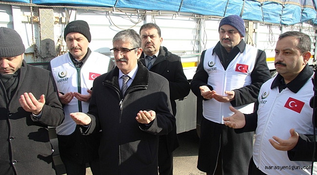 Kahramanmaraş İl Müftüsü Celal Sürgeç’in dualarının ardından Kahramanmaraş Fuar Merkezi'nden çıkış yapan yardım tırlarını, Büyükşehir Belediyesi Genel Sekreteri Züver Çetinkaya, Yazı İşleri ve Kararlar Daire Başkanı Hasan Balbaba ile şube müdürleri, Hayrat Vakfı gönüllüleri, Sosyal Yardım Hizmetler Şube Müdürlüğü personelleri, öğrenciler ve vatandaşlar uğurladı. Yardım tırları içerisinde un, giyim, gıda, kömür, battaniye, ev eşyası, yatak, ayakkabı, çocuk gıdası ve et konserveleri bulunuyor.
