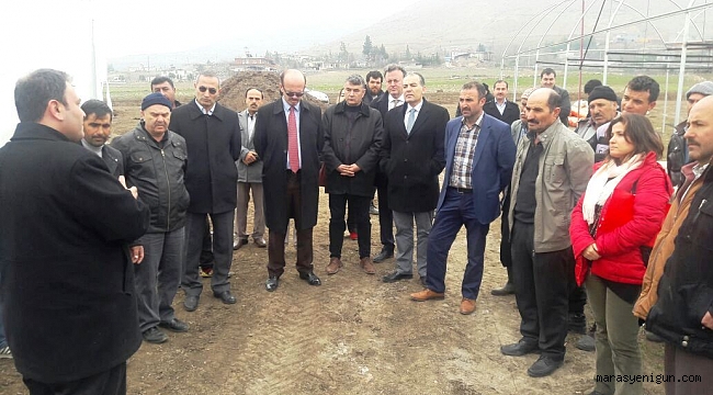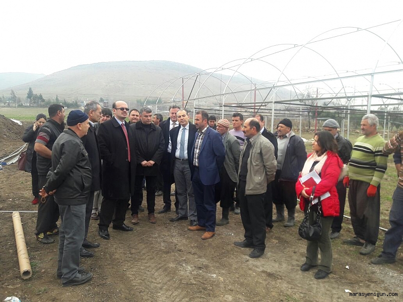 Türkoğlu İlçesi Kadıoğlu Çiftliğinde Seralarda İyi Tarım Uygulaması İlimiz seracılığında önemli bir yere sahip olan Türkoğlu İlçesi Kadıoğlu Çiftliği Mahallesinde “Seralarda İyi Tarım Uygulamaları ve Bitki Besleme” konusunda çiftçi eğitim toplantısı yapıldı.Eğitim Toplantısına İl Gıda Tarım ve Hayvancılık Müdürü İhsan Emiralioğlu, K.S.Ü. Toprak Bilimi ve Bitki Besleme Bölümü Öğretim Üyesi Prof. Dr. Kadir Saltalı, Türkoğlu İlçeGıda Tarım ve Hayvancılık Müdürü Halil Burç ve teknik personeller katıldı. Yapılan toplantıda iyi tarım uygulamaları ve bitki besleme ile ilgili bilgiler verildi.Eğitim toplantısında konuşan İhsan Emiralioğlu; İlimizde iyi tarım uygulaması yapılan alanların hızla arttığını söyleyerek daha güvenilir ve sağlıklı ürünler için iyi tarım uygulamalarının önemine dikkat çekti.Halil Burç ise; iyi tarım uygulaması yapılan alanlarda, üretimin her aşamasının takibinin yapıldığı, belirli zamanlarda numuneler alınıp analizler yapılarak da tüketiciye gönül rahatlığıyla tüketebileceği ürünler ulaştırıldığını söyledi.Üreticilerle, açık alanda yapılan toplantının ardından üretim sezonuna hazırlanan ve inşa aşamasında olan seralar gezildi.