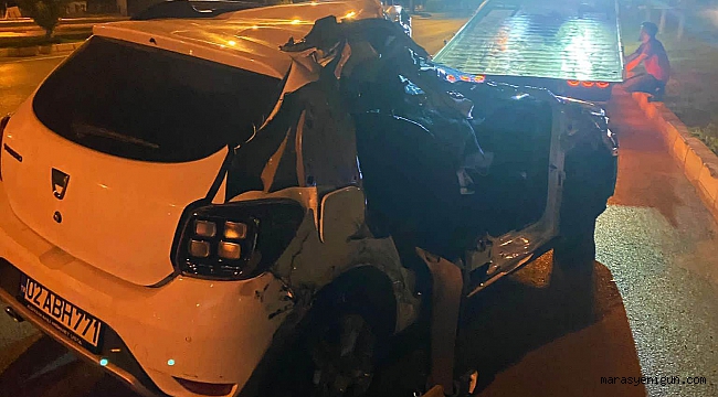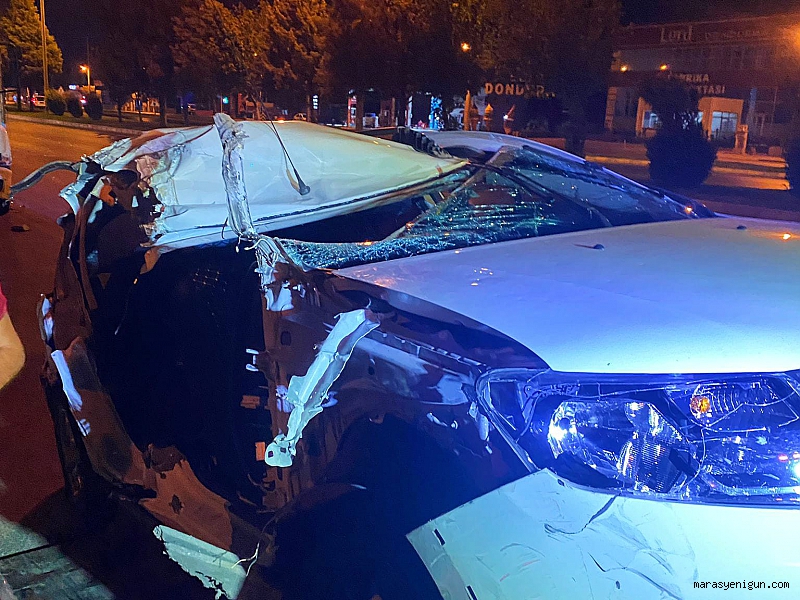 Kahramanmaraş’ta kamyona arkadan çarpan otomobil paramparça oldu.