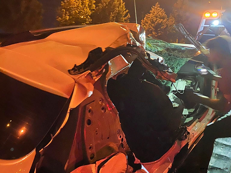 Kamyona Arkadan Çarpan Otomobil Paramparça Oldu