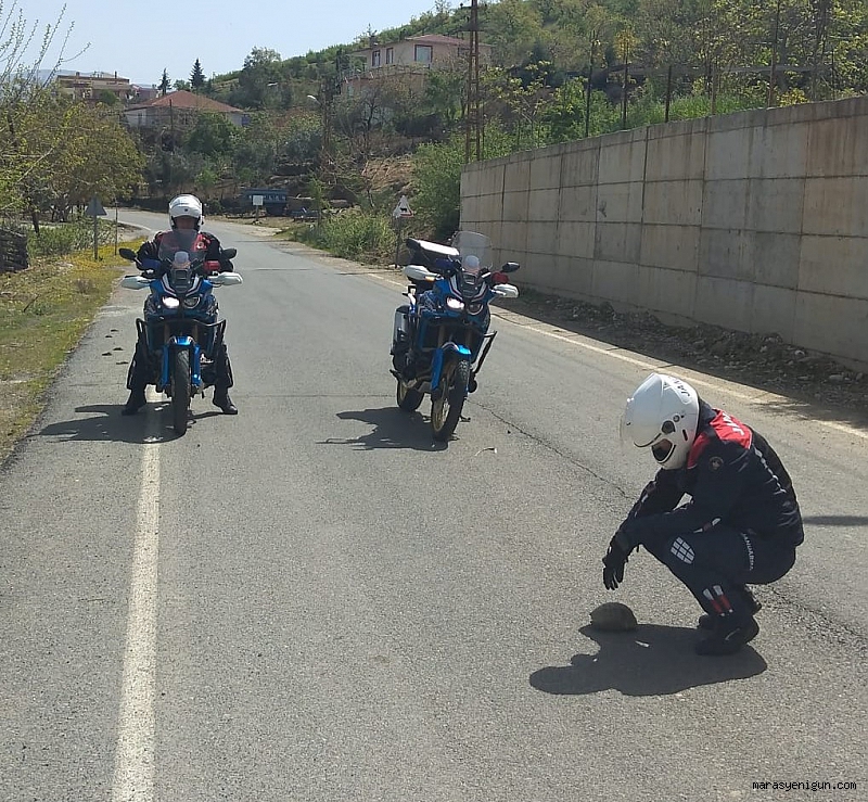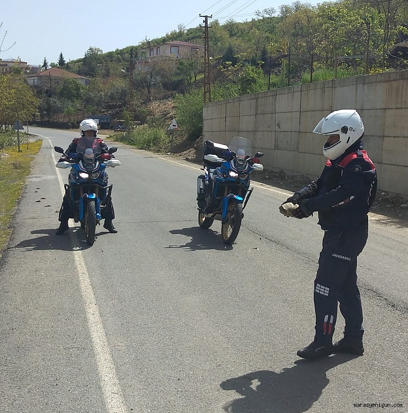 Onikişubat İlçesine bağlı İsmailli Mahallesi’nde Jandarma Motosikletli Trafik Timleri, yol üzerinde bulunan kaplumbağayı fark etti. Yolu her iki yönlü trafiğe kapatan jandarma ekipleri, kaplumbağayı yol üzerinden alarak, karşı yöne bıraktı. Kaplumbağanın güvenli alana geçmesiyle jandarma ekipleri, yolu tekrar trafiğe açtı.