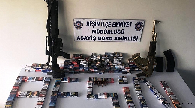 Afşin'de çalıntı sigara ve Kakeşnikov tüfek ele geçirildi polis ekipleri gece yarısı Hırsızlık yapan kar maskeli hırsızları suçüstü yakaladı.
