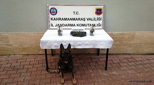 Edinilen bilgiye göre, Elbistan İlçe Jandarma Komutanlığı ve Kahramanmaraş İl Jandarma Komutanlığı KOM Şube Müdürlüğü görevlilerinin uyuşturucu madde ticaretine yönelik olarak yaptığı çalışmalarda ilçeye bağlı İğde Mahallesi’nde H.M. isimli şahsın evinde arama yapıldı. Narkotik köpeği ‘Atos’ isimli narkotik arama köpeğin de katıldığı operasyonda evin her köşesi didik didik arandı. Mutfak bölümüne gelindiğinde ise narkotik arama köpeği Atos tepki verdi. Jandarma ekipleri, yaptıkları detaylı incelemede poşet ve kavanoz içerisinde 108 gram esrar maddesi ele geçirdi.