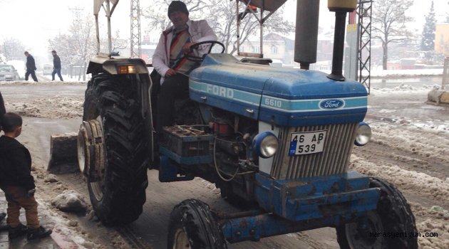 Kendisine Ait Traktörle Karla Mücadale Ediyor