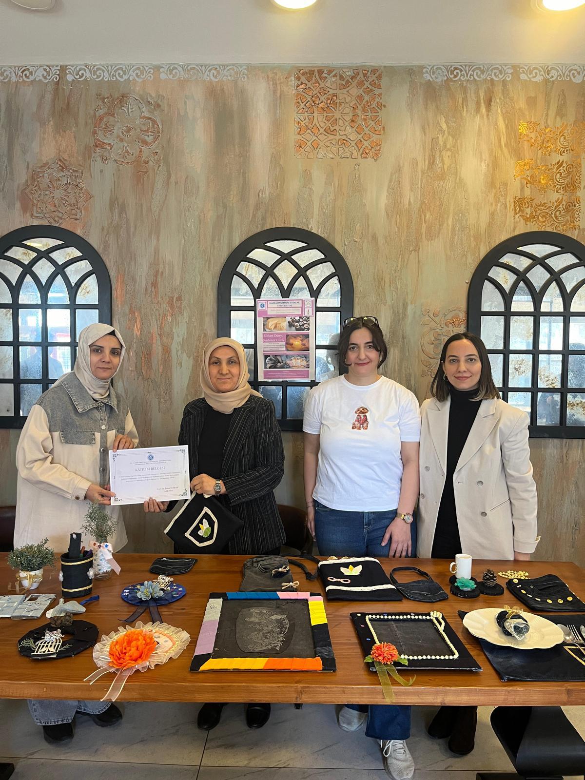Etkinlikte, Kahramanmaraş İstiklal Üniversitesi Türkoğlu Meslek Yüksekokulu’nda görev yapan kadın akademisyenler tarafından çeşitli uygulamalı atölye çalışmaları gerçekleştirildi.