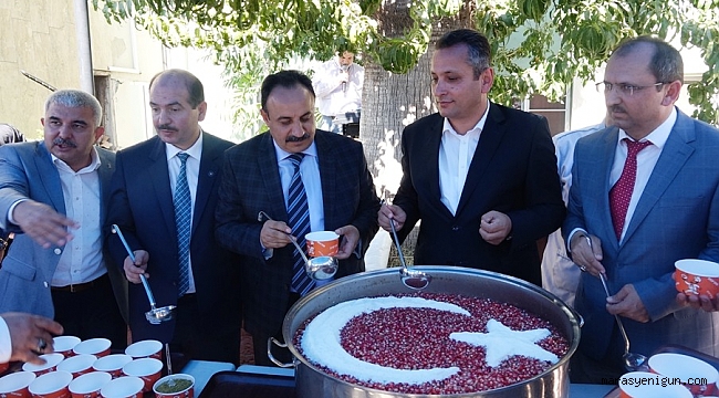 "Şehrullahi'l-muharrem" olarak meşhur olan, yani "Allah’ın ayı muharrem" olarak bilinen muharrem ayı, ilahi bereket ve feyzin, rabbani ihsan ve kerem’in coştuğu ve bollaştığı bir ay olarak tanımlanır.Aşure günü ya da aşura günü hicri takvimin ilk ayı olan muharrem ayının onuncu günüdür.Okul bahçesinde düzenlenen aşure programı hafız Harun Başboğa’nın okuduğu Kur’an tilavetiyle başladı. Mehteran takımı bir birinden güzel marşlarla aşure programına renk kattı. Şaçaklızade Vakfı Başkanı Ali Demirdöğen’in duasıyla eller semaya yükseldi.Programı Okulun 11/A sınıfından Sümeyye Sevde Demirel’in güzel sunumu ile Aşure ileilgili Hadis’i Şerifleri okuyan 11/A sınıfından Esra Ayça Güneçıkan ile 11/C sınıfından Ayşenur Abacı katılımcılardan ve öğrencilerden büyük alkış aldı.Daha sonra protokolden Dulkadiroğlu Kaymakamı Kadir Okatan, İl Milli Eğitim Müdürü Mehmet Emin Akkurt, Ak Parti Dulkadiroğlu İlçe Başkanı Şahin Avşaroğlu, Dulkadiroğlu İlçe Milli Eğitim Müdürü Harun Kurt, KSÜ İlahiyat Fakültesi Dekanı Prof. Dr. Mehmet Akif Özdoğan ve Kız İmam Hatip Lisesi Müdürü Bilal Yiğit, pişirilen aşureleri kepçelerle dağıttı. “AŞKLA VE COŞKULA YAŞATACAĞIZ”Kahramanmaraş Hacı Mehmet Kalay Kız Anadolu İmam Hatip Lisesi Müdürü Bilal Yiğit Muharrem aynın önemine değindi. Müdür Yiğit konuşmasında; “Muharrem ayı Yüce Rabbimizin Kur’an-ı Kerimde değer verdiği aylardandır. Bu mübarek ayın 10. gününe aşure denilmiştir. Yüce Rabbimiz aşure günü birçok Peygamberimizin dualarını kabul etmiş ve onları nimetlerle ödüllendirmiştir. Duaları kabul edilen ve nimetlendirilen Peygamberlerde bizler için güzel örnekler vardır. Aşure etkinlikleri milletimizin sahiplendiği aşkla ve coşkuyla yaşatmaya çalıştığı, toplumsal olarak birlik ve beraberliğimize kaynaşmamıza ve paylaşmamıza vesile olmaktadır.” şeklinde konuştu. Aşure programına Dulkadiroğlu Kaymakamı Kadir Okatan, İl Milli Eğitim Müdürü Mehmet Emin Akkurt, AK Parti Dulkadiroğlu İlçe Başkanı Şahin Avşaroğlu, AK Parti Dulkadiroğlu İlçe Kadın Kolları Başkanı Asuman Yavuz, Dulkadiroğlu İlçe Milli Eğitim Müdürü Harun Kurt, KSÜ İlahiyat Fakültesi Dekanı Prof. Dr. Mehmet Akif Özdoğan, Kız İmam Hatip Lisesi Müdürü Bilal Yiğit, STK temsilciler,şube müdürleri, öğretmenler ve çok sayıda öğrenci katıldı. (Haber: Hacı Ali Güneçıkan)