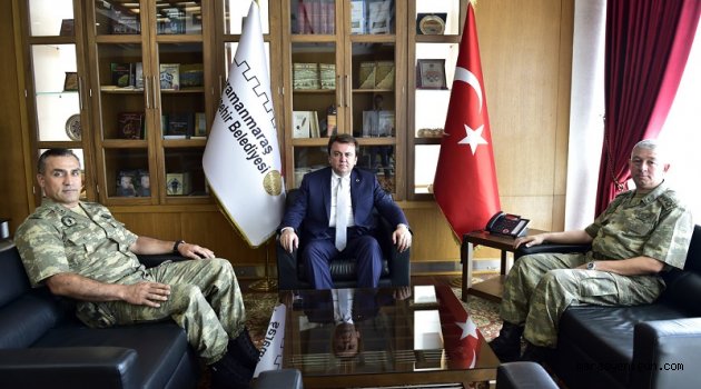 Başkanlık makamında gerçekleşen ziyarette Büyükşehir Belediye Başkanı Fatih Mehmet Erkoç, yeni atanan Kur. Alb. Şahin’e hayırlı olsun dileklerini iletirken aynı zamanda, Kahramanmaraş’a Türkiye Büyük Millet Meclisi tarafından verilen Kırmızı Şeritli İstiklal Madalyasını göstererek bilgi verdi.\r\n\r\nZiyarete tayini çıkan 5. Zırhlı Tugay eski Komutan Yardımcısı Tank. Alb. Burç Tekin de katıldı.\r\n