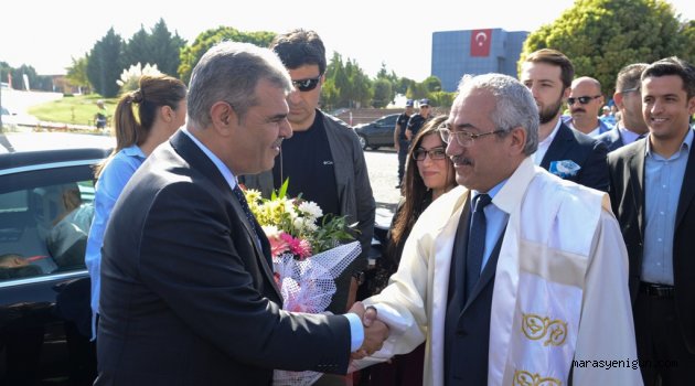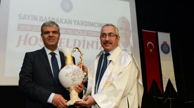 \r\n\r\nKSÜ 2016-2017 akademik yılı açılış töreni öncesi ilk etkinlik 15 Temmuz Kahramanı Şehit Astsubay Ömer Halisdemir’in adının verildiği parkta gerçekleştirildi. KSÜ Senatosunun 29.07.2016 tarih ve 2016-20 sayılı toplantısında alınan kararla “Şehit Astsubay Ömer Halisdemir” meydanı olarak adlandırılan meydanın açılışını Başbakan Yardımcısı Veysi Kaynak, Rektör Prof. Dr. Durmuş Deveci ve il protokolü üyeleri Kur’an tilaveti ve dualar eşliğinde birlikte yaptı. Ayrıca meydanda oluşturulan 15 Temmuz ve Şehit Ömer Halisdemir fotoğraflarının yer aldığı sergi protokol tarafından gezildi. Kahramanmaraş Büyükşehir Belediyesi Bandosu Mehteran Ekibi de törende kısa bir mehteran dinletisi sundu.\r\n\r\nŞehit Astsubay Ömer Halisdemir meydanının açılışının ardından KSÜ Cahit Zarifoğlu Konferans Salonunda gerçekleştirilen akademik yıl açılış törenine geçildi. İstiklal marşı ve KSÜ tanıtım filmi gösterimiyle başlayan program Gaziantep Üniversitesi Türk Musikisi Konservatuarı öğretim elemanlarının müzik dinletisi ile devam etti.\r\n\r\nTörenin açılış konuşmasını Kahramanmaraş Valisi Vahdettin Özkan yaptı. Vali Özkan, “İlimizin en önemli zenginlik kaynağı, ilimize en büyük katma değer katan kurumumuz, üniversitemizin açılışının hem ilimiz, hem tüm insanlık açısından, öğrencilerimize hayır ve bereket getirmesini, iyi ve başarılı bir yıl geçirmenizi temenni ediyorum” dedi.\r\n\r\nÜniversitelerin kültür yaşamımızdaki yerine ve önemine değinen Vali Vahdettin Özkan sözlerini şu şekilde sürdürdü: “Biz gerçekten üniversitelerin, eğitimin, öğretimin, mağrifetin değerini bihakkın bildiğimiz zaman, hem bireysel olarak, hem aile olarak, hem toplum olarak kalkınma sürecini gerçek anlamda yakalayabiliriz. Aslında bu iklim içerisinde yetişen öğrencilerimiz, genç nesil, bunu çok iyi özümsedikten sonra bu kalkınma süreci çok daha hızlı bir şekilde gerçekleşecektir.”\r\n\r\nKSÜ Rektörü Prof. Dr. Durmuş Deveci ise üniversite hakkında bilgiler vererek başladığı konuşmasında İslam coğrafyasında yaşanan olaylara ve insanlık dramlarına dikkat çekerek bu konuda en büyük görevlerden birinin de akademisyenlere düştüğünün altını çizdi. Rektör Deveci, “Bugün Türk-İslam dünyasının içerisinde bulunduğu dönemi, fetret dönemi olarak nitelendirmek sanırım yanlış olmaz. İki asra yakın bir süre gerileme ve savunma halindeyiz. Bu durumun iyi incelenmesi, etüt edilmesi gerekmektedir. Bu işte Türk aydınına ve akademisyenlerine büyük işler düşmektedir. Diğer taraftan Türkiye’nin 21. Yüzyıl için belirlediği vizyon, misyon, küresel güç olma, 2023 ve 2071 hedeflerine ulaşmasında üniversitelere ve akademisyenlere önemli işler düşmektedir.” şeklinde konuştu.\r\n\r\nMilli Şairimiz Mehmet Akif Ersoy’un ‘Âtiyi karanlık görerek azmi bırakmak...