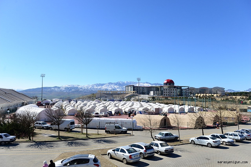Kahramanmaraş ve çevre illerinde büyük yıkıma neden olan, Cumhuriyet tarihinin en büyük felaketleri arasında ilk sırada gösterilen, merkez üssü Kahramanmaraş olup, 10 ili etkileyen 7.7 ve 7.6 şiddetindeki depremlerin ardından Kahramanmaraş Sütçü İmam Üniversitesi Avşar Yerleşkesini depremzedelere açmıştır. Depremin meydana geldiği ilk günden itibaren başta üst kuruluşlar ve ilgili kuruluşlarla koordinasyon içerisinde harekete geçen Üniversitemiz, KSÜ Sağlık Uygulama ve Araştırma Hastanesi (SUAH), Yunus Emre Kongre ve Kültür Merkezi, Kapalı Spor Salonu, Yarı Olimpik Yüzme Havuzu Tesisleri ile tüm fakülte binalarında depremzedelere destek vermeye başlamıştır. Üniversite yönetimi, KSÜ personeli ve yardım gönüllüleri aracılığıyla yaraların sarılması için öncelikle depremde yaralananlara acil müdahalede gerekli koordinasyonlar sağlanmıştır. KSÜ Avşar Yerleşkesinde felaketin ilk gününden itibaren çalışmalara başlayan KSÜ Ailesine birçok kurum, kuruluş, vakıf ve dernek destek vermiştir. Deprem sonrası tüm Türkiye’den vatandaşlarımız ve gönüllülerimiz ile dünyanın değişik yerlerinden bölgeye akın eden yardımlarla yaraların sarılması için arama kurtarma çalışmalarına başlanmış, dışarıda kalan depremzedelere yardım eli uzatılmıştır.KSÜ Avşar Yerleşkesinde başta bebekler ve çocuklar olmak üzere tüm depremzedelere yönelik çadır kurulması, kahvaltı, sıcak yemek, barınma ve temizlik için gerekli ihtiyacın temini çalışmaları gerçekleştirilmiştir. KSÜ Rektörü Prof. Dr. Alptekin Yasım “İlk günden itibaren depremzedelerin yardımına koşan resmi ve gönüllü kuruluşlar güvenliğin sağlanması, temizlik, gıda ve barınma sorunlarının çözümü konusunda milletimizin birlik ve beraberlik ruhuna yakışan gayretler sergilemiştir. Devletimiz bu felakette ortaya çıkan yaraların sarılması amacıyla tüm imkânlarını seferber ederek gerekli müdahaleleri gerçekleştirmiştir. Bu zor günlerde bize her türlü desteği veren tüm kurum ve kuruluşlara, sivil toplum örgütlerine, bireysel veya kurumsal olarak depremzedelerin yardımına koşan özel sektör temsilcilerine, üniversitemizin vefakâr akademik ve idari personeline çok teşekkür ediyorum.” dedi.