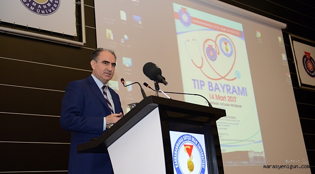 14 Mart Tıp Bayramı, Kahramanmaraş Sütçü İmam Üniversitesi (KSÜ) Tıp Fakültesi Dekanlığı tarafından Sağlık Uygulama ve Araştırma Hastanesi Konferans Salonunda gerçekleştirilen törenle kutlandı.Törenin açılış konuşmasını Kahramanmaraş Valisi Vahdettin Özkan yaptı. Son dönemde Sağlık Bakanlığının sağlık alanında kalite ve kapasiteyi arttırmaya yönelik çalışmalarının olduğunu hatırlatan Vali Özkan, “İnsanlara daha iyi hizmet sunma yönünde çok nitelikli kurumsal, hukuki, fiziki altyapılar ve mekanizmalar oluşturulmuştur. Bütün bu mekanizmaların oluşturulması, kaynakların buralara ayrılması elbette çok önemlidir; anlamlı, iyi bir basamaktır. Ama bunların hepsinden önemlisi bu hizmetlerden çok iyi istifade edebilme ikliminin oluşturulması, bu kültürün oluşturulmasıdır.” şeklinde konuştu.Rektör Vekili Prof. Dr. Ramazan Güneşaçar ise konuşmasına sağlık çalışanlarının 14 Mart Tıp Bayramını kutlayarak başladı. Rektör Vekili Güneşaçar, Tıp Fakültesi öğrencilerine seslenerek şu tavsiyelerde bulundu:‘Vatanını en çok seven Vatanı için en çok çalışandır.’ düsturuyla çalışın, çok çalışıp başarılı olun. Ülkenize hizmet edin.KSÜ Tıp Fakültesi Dekan Vekili Prof. Dr. Alptekin Yasim de konuşmasında sağlık çalışanlarının özlük haklarının ve çalışma koşullarının iyileştirilmesi hususlarına değindi.Kahramanmaraş Tabipler Odası Başkanı Yrd. Doç. Dr. Ekrem Aksu da kısa bir selamlama konuşması yaparak sağlık çalışanlarının karşılaştığı sorunlara dikkat çekerken, sağlık alanında hizmet veren kurumların koordineli bir şekilde çalışmasının önemini vurguladı.Açılış konuşmalarının ardından Çukurova Üniversitesi Tıp Fakültesi Öğretim Üyesi Prof. Dr. Dilek Özcengiz, ‘İyi Hekim Olmak’ başlıklı konferans sunumunu gerçekleştirdi. “Hekim herşeyden önce iyi bir insan olmalıdır.” diyen Özcengiz, iyi bir hekimde olması gereken vasıfları sıraladı.Konferans sunumunun ardından KSÜ Ziraat Fakültesi Öğretim Üyesi Prof. Dr. Durmuş Öztürk’ün çektiği fotoğraflardan oluşan “Yaşam Kaynağımız, Ormanlarımız” başlıklı multimedya gösterimi gerçekleştirildi.Törende ayrıca KSÜ Tıp Fakültesi 2016-2017 1. Dönem öğrencilerine beyaz önlükleri, protokol üyeleri ve Tıp Fakültesi öğretim üyeleri tarafından törenle giydirildi.