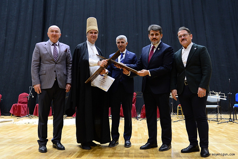 Kahramanmaraş Sütçü İmam Üniversitesinde (KSÜ) UNESCO tarafından 2023 yılının Mevlânâ Yılı ilan edilmesi münasebetiyle Kültür ve Turizm Bakanlığı iş birliğinde ve UNESCO’nun desteğiyle “Vuslatının 750. Yılında Hz. Mevlânâ ve Şeb-i Arûs” töreni düzenlendi.KSÜ Yunus Emre Kongre ve Kültür Merkezinde düzenlenen ve Kültür ve Turizm Bakanlığı Güzel Sanatlar Genel Müdürlüğü İstanbul Tarihi Türk Müziği Topluluğu tarafından icra edilen Fahrettin Dede’nin Acem AşîranÂyin-i Şerif ve Sema Töreni ile Kahramanmaraş’ta ilk defa bu şekilde bir mevlevîâyini tertip edildi.Törene 66. Hükûmet Tarım ve Orman Bakanı, Kahramanmaraş Milletvekili Prof. Dr. Vahit Kirişçi, Kahramanmaraş Valisi MükerremÜnlüer, Kahramanmaraş Milletvekili Ömer Oruç Bilal Debgici, Kahramanmaraş Büyükşehir Belediye Başkanı Hayrettin Güngör, Cumhuriyet Başsavcısı Ramazan Murat Tiryaki, Kültür ve Turizm Bakanlığı Güzel Sanatlar Genel Müdürü Ömer Faruk Belviranlı, KSÜ Rektörü Prof. Dr. Alptekin Yasım, il protokol üyeleri, KSÜ Personel ve öğrencileri ile vatandaşlar katıldı.Program 66. Hükûmet Tarım ve Orman Bakanı, Kahramanmaraş Milletvekili Prof. Dr. Vahit Kirişçi’nin açılış konuşması ile başladı. Mevlânâ Celaleddin-i Rûmi Hazretlerinin milletimizin en kıymetli değerlerinden biri olduğunu vurgulayan Kirişçi, “Vuslatının 750. Yılında Hz. Mevlânâ’nın böylesine anlamlı bir programla, âyin-i şerifle yâd edilmesine vesile oldukları için Kahramanmaraş Sütçü İmam Üniversitesine teşekkür ediyorum.” dedi. Kirişçi konuşmasını geçtiğimiz günlerde bölücü terör örgütü PKK’nın saldırıları sonucu şehit düşen güvenlik güçlerimizeve 6 Şubat depremlerinde hayatını kaybeden deprem şehitlerine rahmet dileyerek tamamladı.KSÜ Rektörü Prof. Dr. Alptekin Yasım da konuşmasında Hz. Mevlânâ’nın milletimizin hamurunu yoğuran önemli şahsiyetlerin başında geldiğini, bu şuurla 750. Vuslat Yılında tertip ettikleri programla Hz. Pîr’i yâd ettiklerini belirtti. Rektör Yasım “Programın düzenlenmesinde büyük katkıları olan Kültür ve Turizm Bakanlığı Güzel Sanatlar Genel Müdürü Ömer Faruk Belviranlı’ya, İstanbul Tarihi Türk Müziği Topluluğu heyetine ve değerli katılımlarıyla bizleri yalnız bırakmayan siz kıymetli hemşehrilemize çok teşekkür ediyorum.” dedi.Açılış konuşmalarının ardından Kültür ve Turizm Bakanlığı Güzel Sanatlar Genel Müdürlüğü İstanbul Tarihi Türk Müziği Topluluğu tarafından Fahreddin Dede’nin Acem AşîranÂyin-i Şerifi ve Sema Töreni icra edildi.Katılımcıların büyük bir beğeniyle izlediği Âyin-i Şerif ve Sema Töreninin akabinde 66. Hükûmet Tarım ve Orman Bakanı, Kahramanmaraş Milletvekili Prof. Dr. Vahit Kirişçi, Kahramanmaraş Valisi MükerremÜnlüer,Kahramanmaraş Milletvekili Ömer Oruç Bilal Debgicive KSÜ Rektörü Prof. Dr. Alptekin Yasım tarafından Güzel Sanatlar Genel Müdürü Ömer Faruk Belviranlı ve İstanbul Tarihi Türk Müziği Topluluğu Genel Sanat Yönetmen Yardımcısı Bahri Güngördü’ye teşekkür belgesi ile Kahramanmaraş’ın geleneksel el sanatlarının nadide örneklerinden ceviz oyma sandık ve okuma rahlesi hediye edildi.Tören protokol üyelerinin de katıldığı toplu fotoğraf çekimiyle sona erdi.