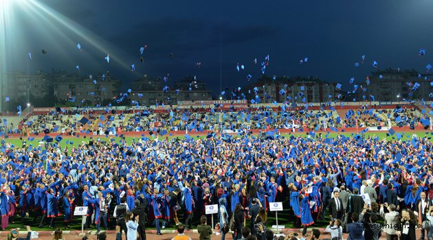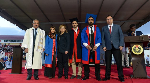 \r\n\r\nKSÜ 2015-2016 Akademik Yılı Mezuniyet Töreni 12 Şubat Stadyumu’nda gerçekleştirildi. Bütün fakülte ve yüksekokulları kapsayan mezuniyet töreninin açılış konuşmasını Kahramanmaraş Sütçü İmam Üniversitesi (KSÜ) Rektörü Prof. Dr. Durmuş Deveci yaptı.\r\n\r\nKSÜ Rektörü Prof. Dr. Durmuş Deveci, “Mensubu olmaktan gurur duyduğumuz üniversitemiz, 24 yıldır ‘Değişimin ve Geleceğin Adresi’ olma anlayışıyla eğitim öğretim hizmeti sunmaktadır. Üniversitemiz, etik ve bilimsel değerlerle donanımlı bireyler yetiştirerek şehrimiz, bölgemiz ve ülkemizin geleceğinde önemli bir rol üstlenmektedir. Yurt dışı ilişkilerini artırarak da uluslararası bir üniversite olma yolunda büyük adımlar atan üniversitemiz, insana hizmet düsturundan hareketle saygın üniversitelerden biri olma vizyonuyla faaliyetlerini sürdürmektedir.” şeklinde konuştu.\r\n\r\nÖğrencileri, iş ve sosyal yaşamlarında çeşitli başarılara imza atacak bireyler olarak yetiştiren akademik personele de teşekkür eden Rektör Deveci, “Öğrencilerimize sadece teorik bilgileri öğretmekle kalmadınız, aynı zamanda birey olarak sorumluluklarını, topluma karşı görevlerini öğrettiniz ve sizler, onlar için hayatlarında örnek alacakları bir model oldunuz.” ifadelerini kullandı.\r\n\r\nTörene katılan aileleri de tebrik ederek “Onca fedakârlıkla bu günlere getirdiğiniz evlatlarınız, başarılarıyla bugün size büyük bir mutluluk yaşatmış oluyor. Bu güzel günde onları ve bizleri de yalnız bırakmadınız. Sizleri kutluyorum.” dedi.\r\n\r\nÖğrencilerin özgüveninin ve azminin, ülkenin en büyük teminatı olduğunu söyleyen Rektör Deveci, saygın olmanın zengin olmaktan daha değerli olduğunu belirterek mezun öğrencilere şu öğütlerde bulundu: “Size gelen evrakları okumadan imzalamayın, vatandaşı kapıda bekletmeyin, önemli konularda acele etmeyin, biraz düşünün ve ayaklarınız yere basmadan medyatik olmayın.”\r\n\r\nNobel ödülü alan Aziz Sancar’ın “Çoğu insan zekaya inanır, ben inanmıyorum. Bizi birbirimizden ayıran emektir. Ben çalışmaya inanıyorum.” sözünü hatırlatarak “Gayret kadere aşıktır.” diyen Rektör Deveci, öğrencilere Aziz Sancar’ı takip etmeleri tavsiyesinde bulundu. Yeni mezunları sevgiyle uğurladıklarını belirten Rektör Deveci, öğrencilere bundan sonraki hayatlarında başarılar diledi.\r\n\r\nTören, KSÜ Öğrenci Konseyi Başkanı Feyzullah Eren Aşçı ve üniversite dönem birincisi olan İlahiyat Fakültesi öğrencisi Rabiye Kozan Biçici’nin konuşmalarıyla devam etti.\r\n\r\nRabiye Kozan Biçici, mezunlar adına yaptığı konuşmanın ardından Rektör Deveci ile birlikte mezuniyet kütüğüne isim plakasını çaktı.\r\n\r\nÜniversite birincisi Rabiye Kozan Biçici, KSÜ Rektörlüğü tarafından verilen dizüstü bilgisayar ödülünü Kahramanmaraş Valisi Yardımcısı Sultan Doğru’dan alırken, üniversite ikincisi olan İlahiyat Fakültesi öğrencisi Muhammet Raşit Ercan ödülünü Rektör Prof. Dr. Durmuş Deveci'den, yine İlahiyat Fakültesi öğrencisi üniversite üçüncüsü Abdulvahap Kılıç da ödülünü Dulkadiroğlu Kaymakamı Mehmet Türköz'den aldı.\r\n\r\nÖnlisans düzeyinde 2015-2016 dönem birincisi Elbistan MYO öğrencisi İlknur Atacan olurken, Göksun MYO öğrencisi Hilal Altıparmak ikinci, Sağlık Hizmetleri MYO öğrencisi Kevser Aygan üçüncü oldu. Dereceye giren bütün öğrencilere plaket ve başarı belgeleri verilerek, Fakülte ve Yüksekokullarda ilk üçe giren isimler, ödüllerini KSÜ Rektör Yardımcıları, Kahramanmaraş İl Protokolü Üyeleri, Fakülte Dekanları ve Yüksekokul Müdürlerinden aldı.\r\n\r\nTören, mezun öğrencilerin hep birlikte mezuniyet andını okumaları ve ardından kep atmalarıyla sona erdi.\r\n