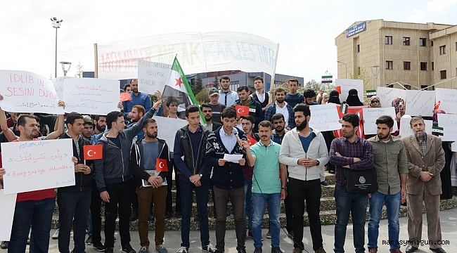 Kahramanmaraş Sütçü İmam Üniversitesi (KSÜ) Öğrenci Konseyi Başkanlığı ve Suriyeli öğrenciler, İdlib’deki kimyasal saldırıyı telin etmek için Avşar Yerleşkesi Şehit Ömer Halisdemir Meydanında bir araya gelerek basın açıklaması yaptı.