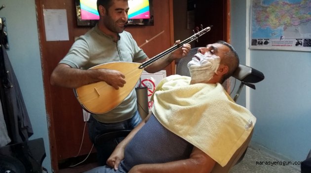 \r\n\r\nGünümüzde kuaförler pek çok farklı şekil ve yöntemle müşterilerini tıraş ederken Türkoğlu İlçesinde faaliyet gösteren Ramazan Baykuş müşterilerini bağlama eşliğinde tıraş ediyor. Kuaföre tıraş olmaya gelen müşterilerin talepleri doğrultusunda tıraş esnasında biryandan da bağlama çalınarak vatandaşların farklı bir ortamda tıraş olunması sağlanıyor.\r\n\r\nRamazan Baykuş; Hobi olarak bağlama çalmaya başladığını ve kendine öğrendiğini belirterek önceleri aile ve arkadaş ortamında bağlama çaldığını zamanla da gelen talepler doğrultusunda kuaförde de çalmaya başladığını belirterek vatandaşların durumdan gayet memnun olduğunu dile getirdi.\r\n\r\nDurumdan komşuları da memnun. Yan dükkânda işletmecilik yapan Ali Saygılı; Komşusunun böylesi bir uğraşının olmasının sevindirici olduğunu belirterek fırsat buldukça Ramazan Baykuş’un kuaförüne giderek bağlama dineldiğini söyledi.\r\n\r\nKuaföre tıraş olmaya gelen Salih Çiçek ise ilk defa kuaförde bağlama çalındığını gördüğünü belirterek canlı müzik eşliğinde tıraş olmanın ayrı bir keyif olduğunu dile getirdi.\r\n\r\n \r\n