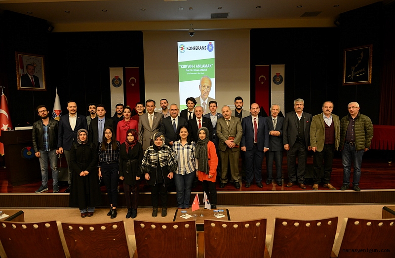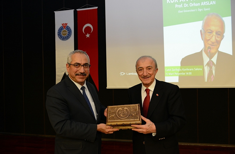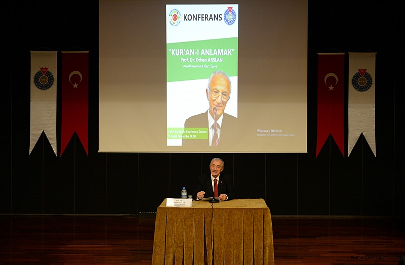 Cahit Zarifoğlu Konferans Salonunda gerçekleştirilen konferansın açılış konuşmasını Milli Kültür Hareketi Öğrenci Topluluğu Akademik Danışmanı Yrd. Doç. Dr. Hikmet Demirci yaptı. Demirci, “Kur’an’ı okumalı, anlamalı ve hayatımızda uygulamalıyız.” diye konuştu.Milli Kültür Hareketi Öğrenci Topluluğu Başkanı Halit Özsoy da kısa bir selamlama konuşması yaptı.Açılış konuşmalarının ardından Gazi Üniversitesi Emekli Öğretim Üyesi Prof. Dr. Orhan Aslan, ‘Kur’an’ı Anlamak’ başlıklı konferans sunumunu gerçekleştirdi. “Kur’an, okunduğunda anlaşılan bir kitap olmasına rağmen ne yazık ki okunmuyor, anlaşılmıyor.” diyen Aslan, “Kur’an-ı Kerim’i anlayarak okumalı ve Kur’an-ı Kerim’i hayatımıza indirmeliyiz.” şeklinde konuştu.İslam’ın dinlerden bir din değil, Allah katında tek din olduğunu vurgulayan Aslan, “İslam, insanın doğru yola, doğru koordinatlara gitmesini sağlayan bir sistemdir. İslam, dünyadaki bütün insani değerlerin toplamıdır.” dedi.“Mübarek olan Kur’an-ı Kerim’in bizi mübarekleştirmesini sağlamalıyız.” diyen Prof. Dr. Aslan, “İslam insanı, insan da İslam’ı arar. İkisini birleştirecek olan Kur’an’dır.” ifadelerini kullandı.Katılımcıların sorularının cevaplandırılmasıyla son bulan konferansın ardından Rektör Prof. Dr. Durmuş Deveci tarafından Prof. Dr. Orhan Aslan’a günün anısına Kahramanmaraş el işçiliğinin en güzel örnekleri arasında yer alan oyma ceviz sandık hediye edildi.