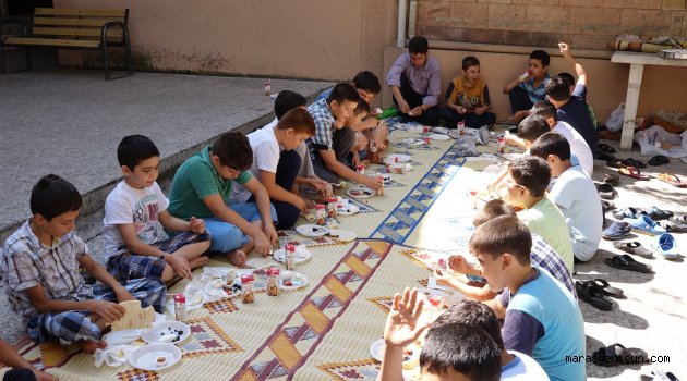 Kahramanmaraş Dulkadiroğlu İlçe Müftülüğüne bağlı Sarayaltı Camiinde yaz Kuran kursuna katılan öğrencilere sabah kahvaltısı veriliyor.