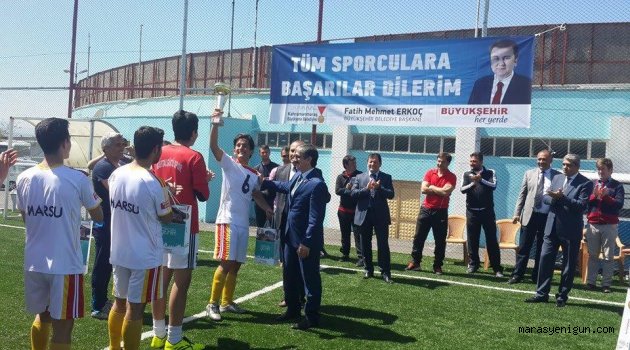 \r\n\r\nKupa ödül töreninde bir konuşma yapan Büyükşehir Belediyesi Genel Sekreter Yardımcısı Çetinkaya: “İlimiz Onikişubat ve Dulkadiroğlu ilçelerimizdeki lise ve ortaokul öğrencilerimizi spora teşvik etmek ve öğrencilerimizi stres ortamından uzak tutmak amacıyla 5 Nisan Madalya ve Kardeşlik Günü’ne özel bir futbol turnuvası düzenledik. Turnuva’da ortaokullar arasında dereceye giren okullarımıza ödüllerini vermiştik. Bugün de lise takımlarımıza ödüllerini veriyoruz. Turnuvanın düzenlenmesinde emeği geçen Gençlik ve Spor Şube Müdürlüğümüze ve takımlarda mücadele eden öğrencilerimize çok teşekkür ediyor başarılarının devamını diliyorum” dedi.