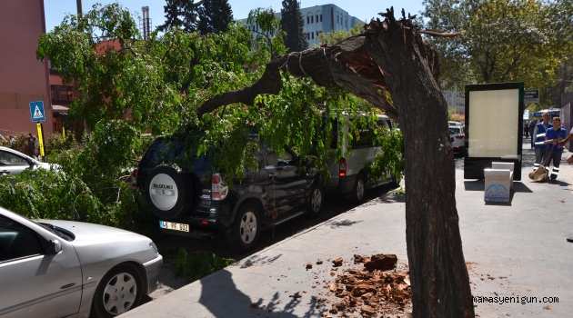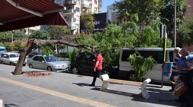 \r\n\r\nOlay Trabzon cad ilksan mağazası önünde meydana gelirken Lüks Otomobilde hafif maddi hasar meydana geldi, devrilen ağaç Kahramanmaraş park bahçeler daire başkanlığı ekiplerince motorlu testere ile kesilerek aracın üzerinden kaldırıldı.\r\n\r\n \r\n