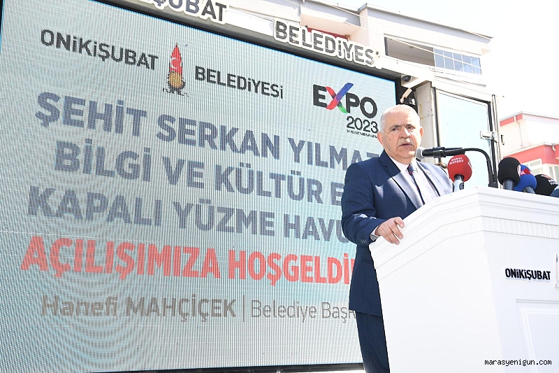 Şehit Serkan Yılmaz Bilgi Kültür Evi ve Yüzme Havuzu Hizmete AçıldıOnikişubat Belediye Başkanı Hanefi Mahçiçek eğitim ve spor alanında yaptığı yatırımlara tüm hızıyla devam ediyor. Bugüne kadar eğitime 51 Milyon, spora ise 33 Milyon yatırım yapan Başkan Mahçiçek, 81 Milyonluk yatırım içerisinde vatandaşa hem eğitim alabileceği, kendini geliştirebileceği hem de sağlıklı yaşam hedefi ile spor yapabileceği alanlar sunuyor. Gönül belediyeciliği hizmet anlayışıyla Saçaklızade Mahallesi’nde iki konsept bir arada Bilgi Kültür Evi ve Yüzme Havuzu açılışını gerçekleştiren Başkan Mahçiçek, inşa ettiği bu mekana Kahramanmaraşlı Şehit Serkan Yılmaz’ın adını verdi.Açılışa AK Parti Genel Başkan Yardımcısı Mahir Ünal, AK Parti Kahramanmaraş Milletvekilleri; Ahmet Özdemir, Celalettin Güvenç, İmran Kılınç,Onikişubat Belediye Başkanı Hanefi Mahçiçek, Onikişubat İlçe Başkanı Mücahit Kara, Onikişubat İlçe Kadın Kolları Başkanı Banu Pakdil, basın mensupları ve vatandaşlar katıldı.6 katlı binadan oluşan İki Konsept Bir Arada Şehit Serkan Yılmaz Bilgi Kültür Evi ve Yüzme Havuzu’nda spor faaliyetleri olarak, anne - çocuk olmak üzere Kapalı Yüzme Havuzu,Fitness Salonu yer alırken, eğitim faaliyetleri olarak, 5 derslik, Kütüphane, 93 kişilik Çok Amaçlı Salon, Atölye, Sergi Alanı gibi alanlar bulunuyor.Açılışta ilk olarak konuşma yapan Onikişubat Belediye Başkanı Hanefi Mahçiçek, ilk olarak bu milletin şehitlerini asla unutmayacağını ve unutturmayacağını belirterek, gelecek nesillerin yeşereceği bu alana Kahramanmaraşlı Şehit Serkan Yılmaz’ın adını verdiklerini söyledi.Mahçiçek “Memleketimizin Refah Seviyesini Yükselteceğiz”Konuşmasına Onikişubat Belediyesi’nin kurulduğu günden bu yana yaptığı hizmetleri anlatarak devam eden Başkan Mahçiçek şu ifadelere yer verdi.“2014 yılında Onikişubat Belediyesi kurulduğunda hiçbir şeyi yoktu. Kurumsal altyapısını en hızlı şekilde kurarken, Onikişubat ilçesinin ihtiyaçlarını tespit ederek, çalışmalarımıza başladık. Yaklaşık 5 yıl sürecinde, yanında yurtları ile beraber İmam Hatip Okulları inşa ettik. 65 kırsal mahalleye Bilgi Kültür Evi ve Yüzme Havuzu yaptık. 7 adet Kapalı Yüzme Havuzu inşa ettik. 312 adet park, 376 Bin Ton asfalt ve 8.4 Milyon m2 kilit parke çalışması yaptık.Onikişubat Belediyesi olarak sadece hizmet edelim, fiziki çalışmalar yapalım demedik. Bunun yanında Kahramanmaraş’ımızın ekonomisini global bir seviyeye getirmeyi hedefleyerek, insanlarımızın refah seviyesini yükseltmek amacıyla iş ve aş seviyesini daha iyi imkanlara taşımak için gayret gösteriyoruz. Aslında yapılması gereken de memleketimizi global bir düzeye getirmektir.Eğitim ve kültür bağlamında da gelecek nesillerin hayatına dokunacak yatırımlar yaptık. Kitaplar Devletimizden, Kırtasiye Malzemeleri ve Okul Çantaları Onikişubat Belediyemizden diyerek, her yıl 12-15 bin arası malzeme dağıtarak, toplamda 58 Bin adet malzemeyi öğrencilerimizle buluşturduk.Kahramanmaraş Bilgiyle Buluşuyor adlı projemizle her sene ortalama 70 Bin kitabı 5’li ve 10’lu setler halinde öğrencilerimize dağıttık. İl Milli Eğitim Müdürlüğümüz ile beraber yürüttüğümüz proje kapsamında öğrencilerimizi bu kitaplardan sınava tabii tutarak, yapılan sınavlar neticesine 1 Milyon 660 Bin okuma oranına ulaştık.kahramanmaraş’ta yine bir ilke imza atarak, sosyal etkinlik merkezleri ile ortaokul ve üniversiteye hazırlanan öğrencilerimize takviye kursları açtık. geçen sene 2400 öğrenci ile %71 başarı sağlarken, bu sene ise 2700 öğrenci ile %90 başarıyı hedefliyoruz.”expo 2023 ile fark yarattıkDaha sonra Kahramanamaraş’a kazandırdığı dev proje EXPO 2023Onikişubat’tan bahseden Başkan Mahçiçek “Memleketimize yeni projeler kazandırmaya devam ediyoruz. EXPO 2023 Onikişubat Kahramanmaraş projemizle birlikte bir dünya kenti olmada kararlıyız. Bu proje ile en az 50 ülke ve en az 2 Milyon ziyaretçinin Kahramanmaraş’a gelmesini bekliyoruz. Artık Kahramanmaraş’ta bir şey yokkompleksi olmayacak. EXPO 2023 Onikişubat Kahramanmaraş ile memleketimiz birçok şehre göre fark yaratmayı başardı.” İfadelerini kullandı.Ardından AK Parti Genel Başkan Yardımcısı Mahir Ünal,Onikişubat Belediye Başkanı Hanefi Mahçiçek’e konuşmasının ardından yaptığı hizmetlerden dolayı teşekkür ederek, bir plaket takdim etti.Programda son olarak bir konuşma yapan AK Parti Genel Başkan Yardımcısı Mahir Ünal, Şehit Serkan Yılmaz’ın adının sonsuza kadar yaşatmak için düzenlenen açılışta bulunmanın yanı sıra, böyle eğitim ve spor alanlarınınSaçaklızade Mahallesi’ne kazandırılmasından dolayı mutluluk duyduğunu belirterek, Onikişubat Belediye Başkanı Hanefi Mahçiçek’i tebrik etti.17 yıldan bu yana Cumhurbaşkanı Recep Tayyip Erdoğan liderliğinde, millet için çalıştıklarını ifade eden Ünal, bu gayretin siyasi çalışma olarak ifade edilmesinin doğru olmadığını belirtti. Milletin refahı için gayret ettiklerini belirten Ünal, meselelerinin bir memleket ve beka meselesi olduğunu söyledi.Konuşmasında 15 Temmuz Darbe Girişiminden de bahseden Ünal, o gece milletin gönül mutabakatını ve gönül birliğinin ispatı olduğunu belirtti.Son olarak Şehit Serkan Yılmaz’ın adının böyle bir yerde yaşatılmasına vesile olan Onikişubat Belediye Başkanı Hanefi Mahçiçek’e teşekkür eden Mahir Ünal, Bilgi Kültür Evi ve Yüzme Havuzu hayırlı ve uğurlu olmasını diledi.
